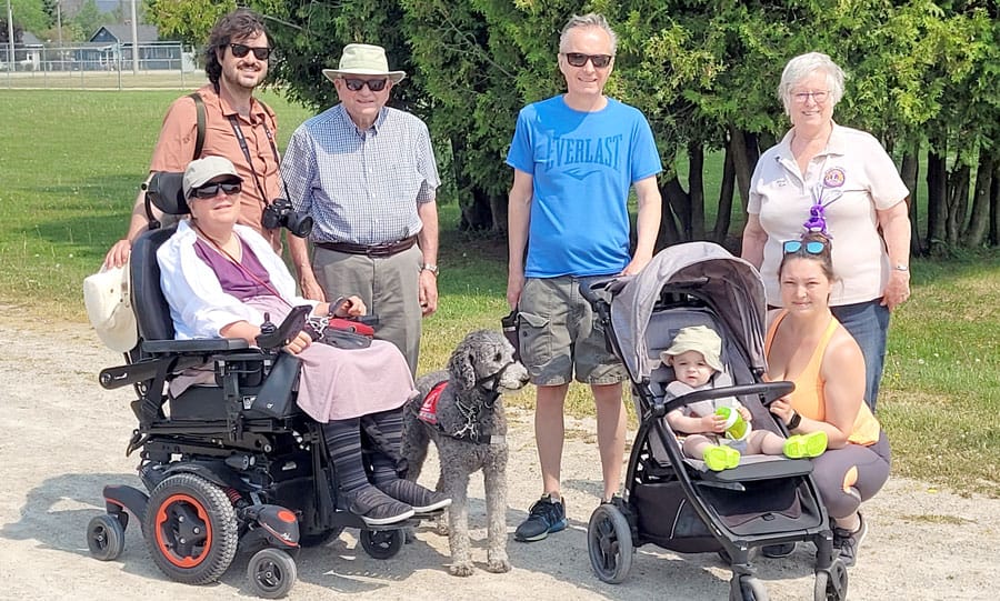 Out for a walk – Members of the MacDonald family and some friends with Lion Mary Ruth Job, coordinator of the annual Mount Forest Lions Club Guide Dog Walk, held on June 3. Submitted photo