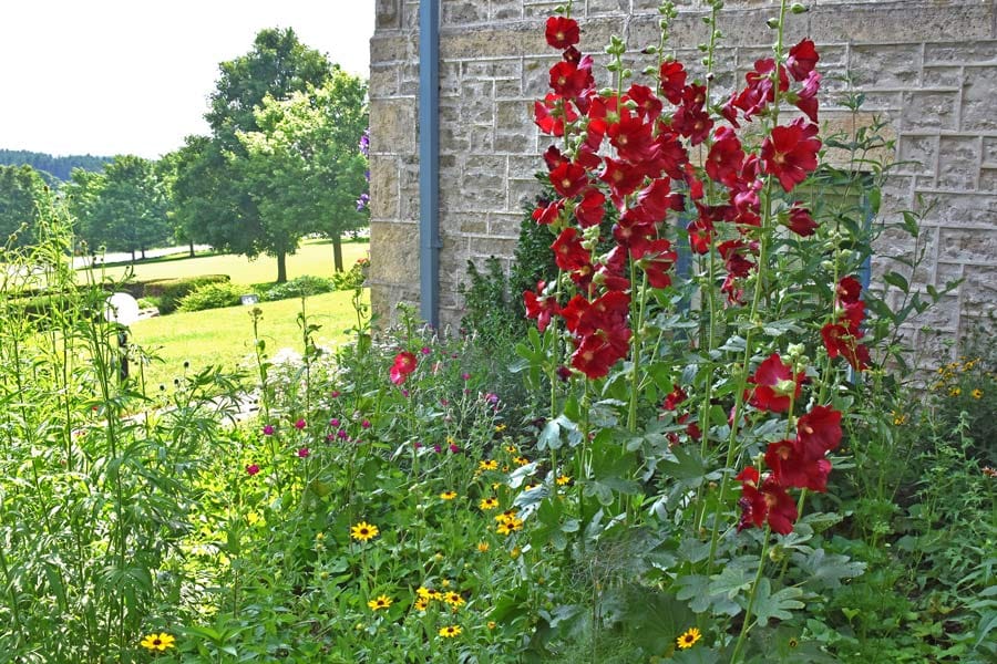 The butterfly garden features plants that attract pollinators - hollyhocks, black-eyed Susans, daisies, and many more. It’s as much fun to watch the bees and butterflies at work as it is to admire the flowers.