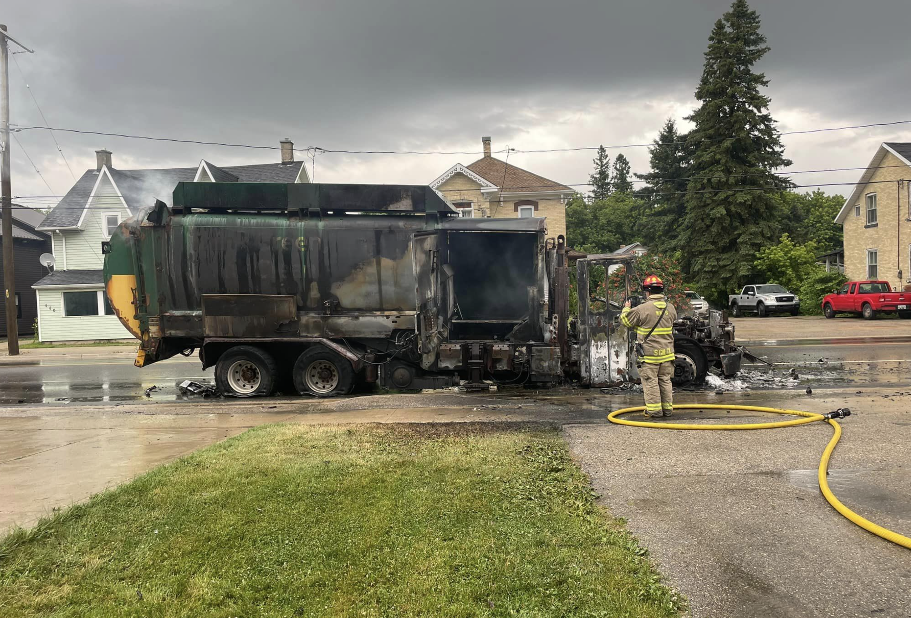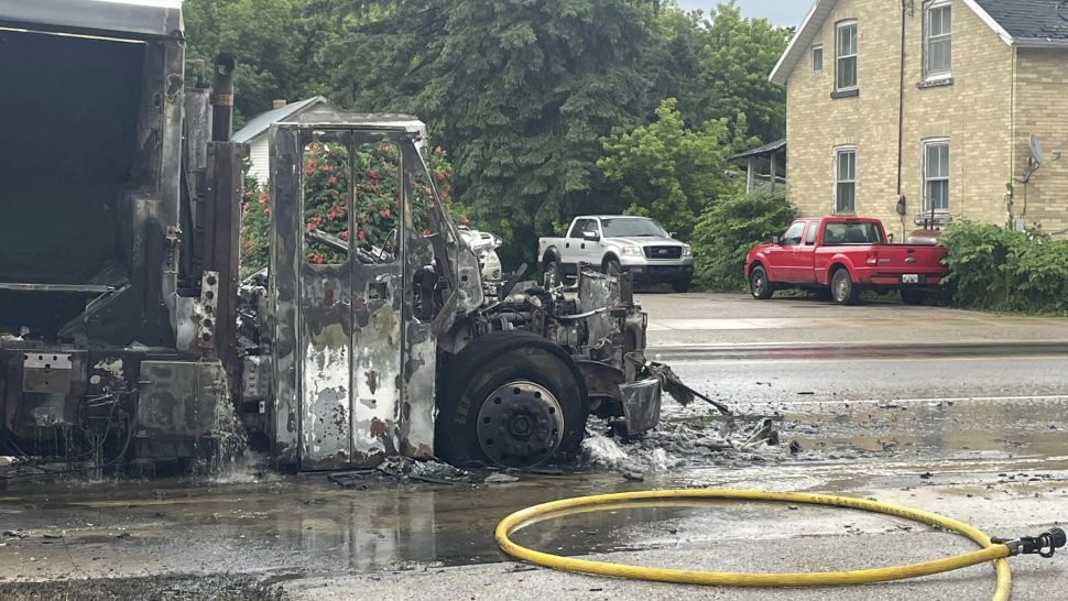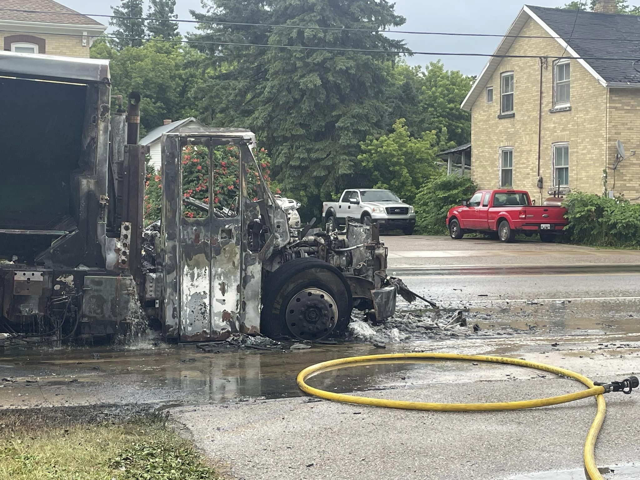 MOUNT FOREST – A natural gas recycling truck went up in flames in front of a home on Mount Forest’s Main Street North on July 10.