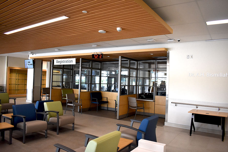 The site features drop-off lanes for patients and 320 parking spaces, for the public and staff, including several barrier-free spaces.