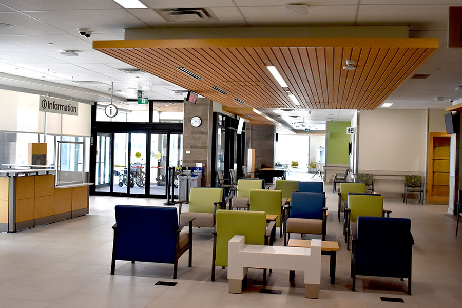 “The new hospital’s design has lots of natural light throughout, which creates a healing environment for our patients in rooms with large windows overlooking the serene natural landscape of open fields and forests,” said Street, alluding to the 30-acre site near the county museum and Wellington Terrace Long-Term Care Home.