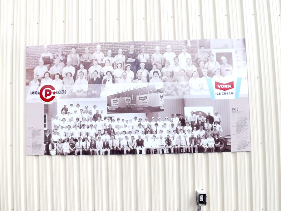 New murals - There are a couple of new public works of art visible on the streets of Harriston these days. : Crown Theatre/Magic Ice Cream Shoppe owner Raissa Rogers hired Hamilton artist Aidan Kenny to paint a mural with a film and ice cream theme on the side of the Elora Street building. Photos by Patrick RaftisThe Harriston Canada Packers Reunion Committee recently arranged for a mural featuring the building, logos and past employees of the former local ice cream producer to be installed at the downtown Tannery Park.