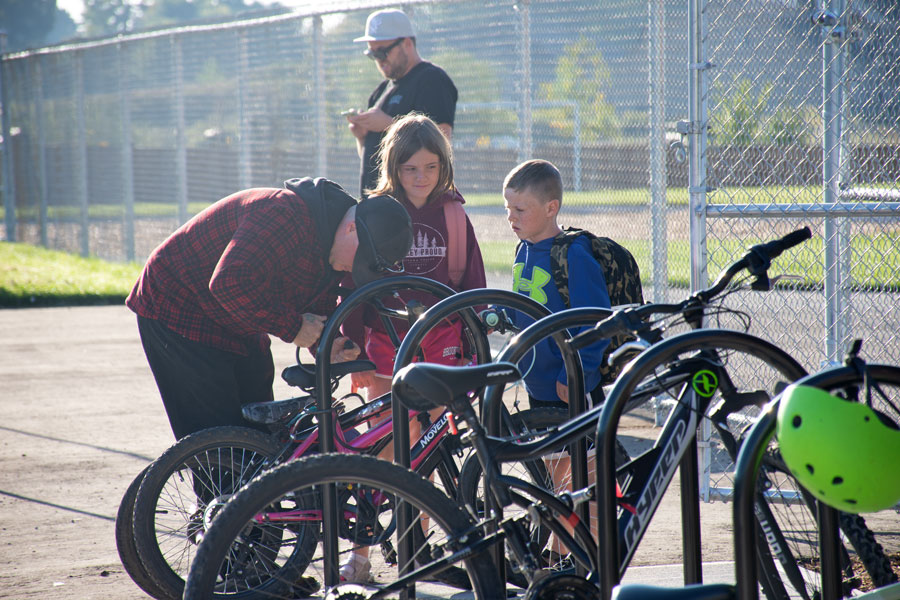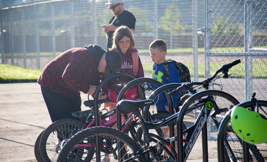 On Sept. 3, many families were able to walk or ride bikes – the bike rack was well-used and there were very few buses bringing students to school.
