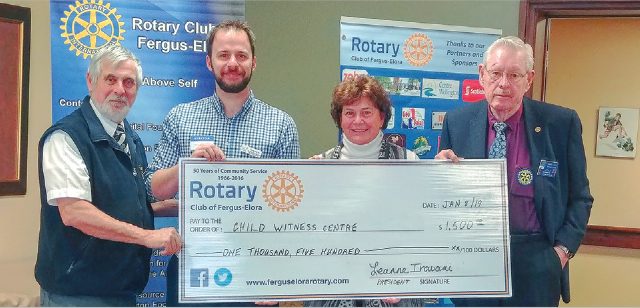Bob Wright, left, and Jim Gibbons, right, of the Rotary Club of Fergus-Elora recently presented a…