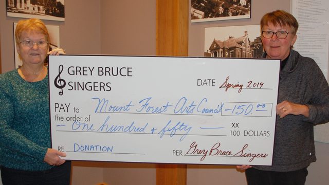 The have made a $150 donation to the Mount Forest Arts Council. Left to right are members Kathy…