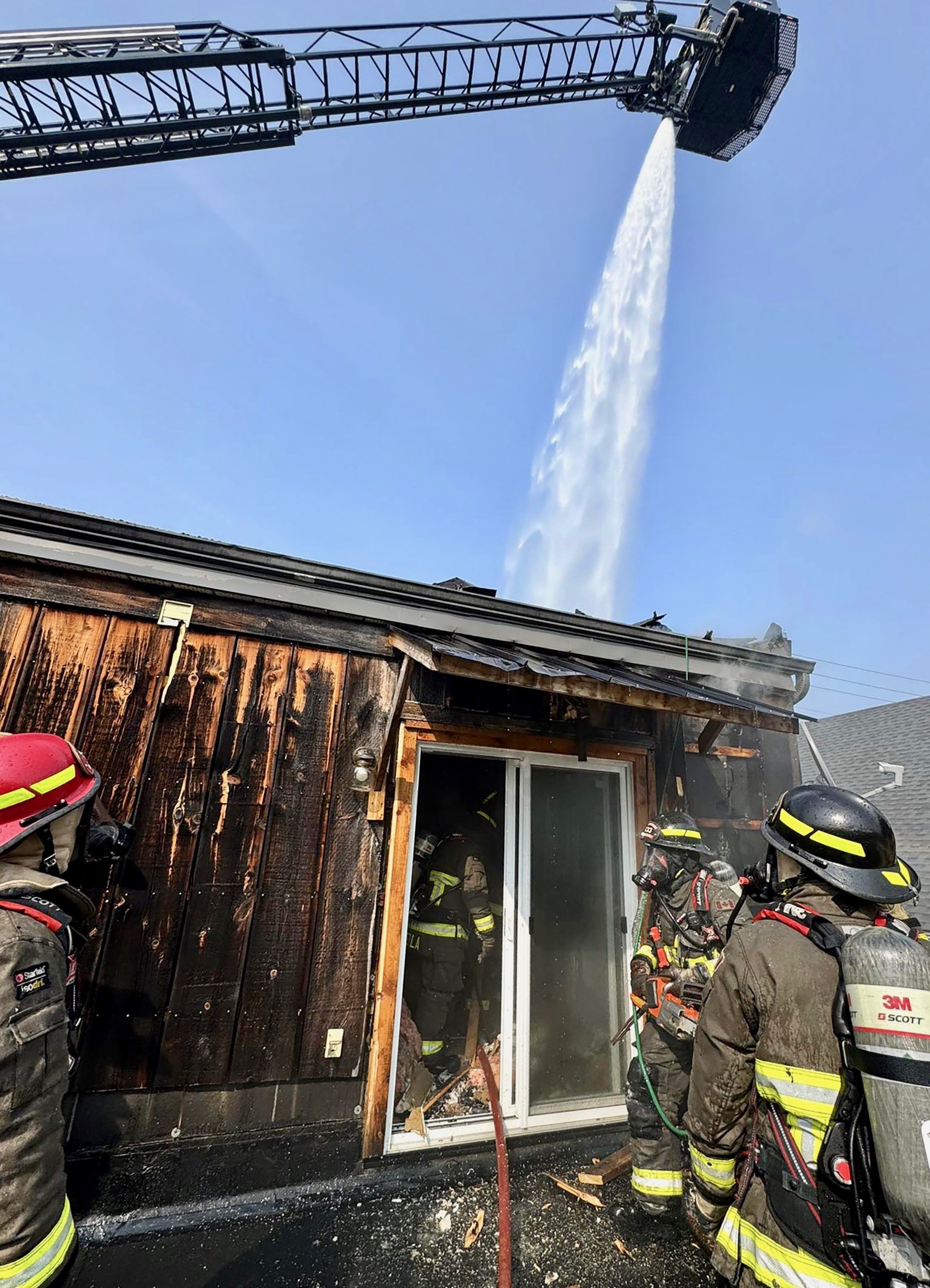 Firefighters conducted an interior fire attack and were aided from the outside by an aerial truck. Fire department photo