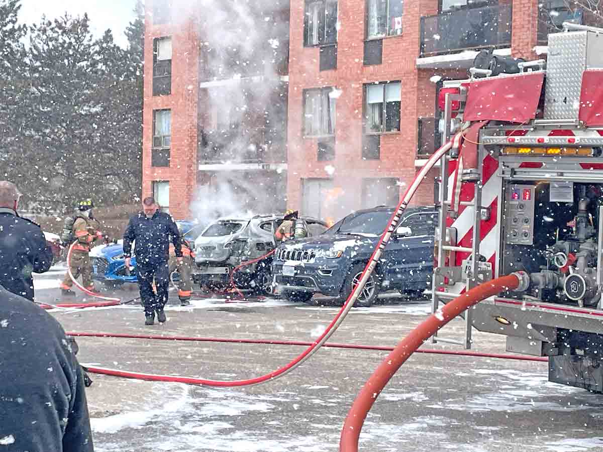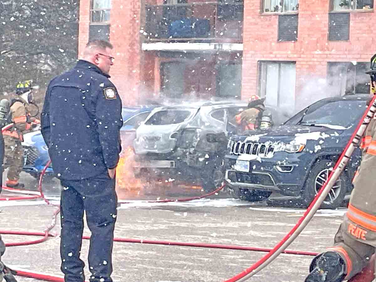 FERGUS – The Centre Wellington fire department responded to a vehicle fire around 9:30am on April 7 in the parking lot at 217 Scotland St. in Fergus.