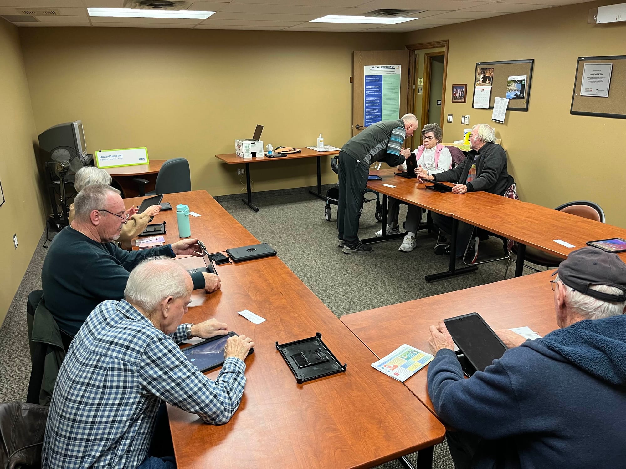 By now, the group has explored internet basics, online research, setting strong passwords, online privacy, scams, social media use, accessing government services online, and music and reading apps.