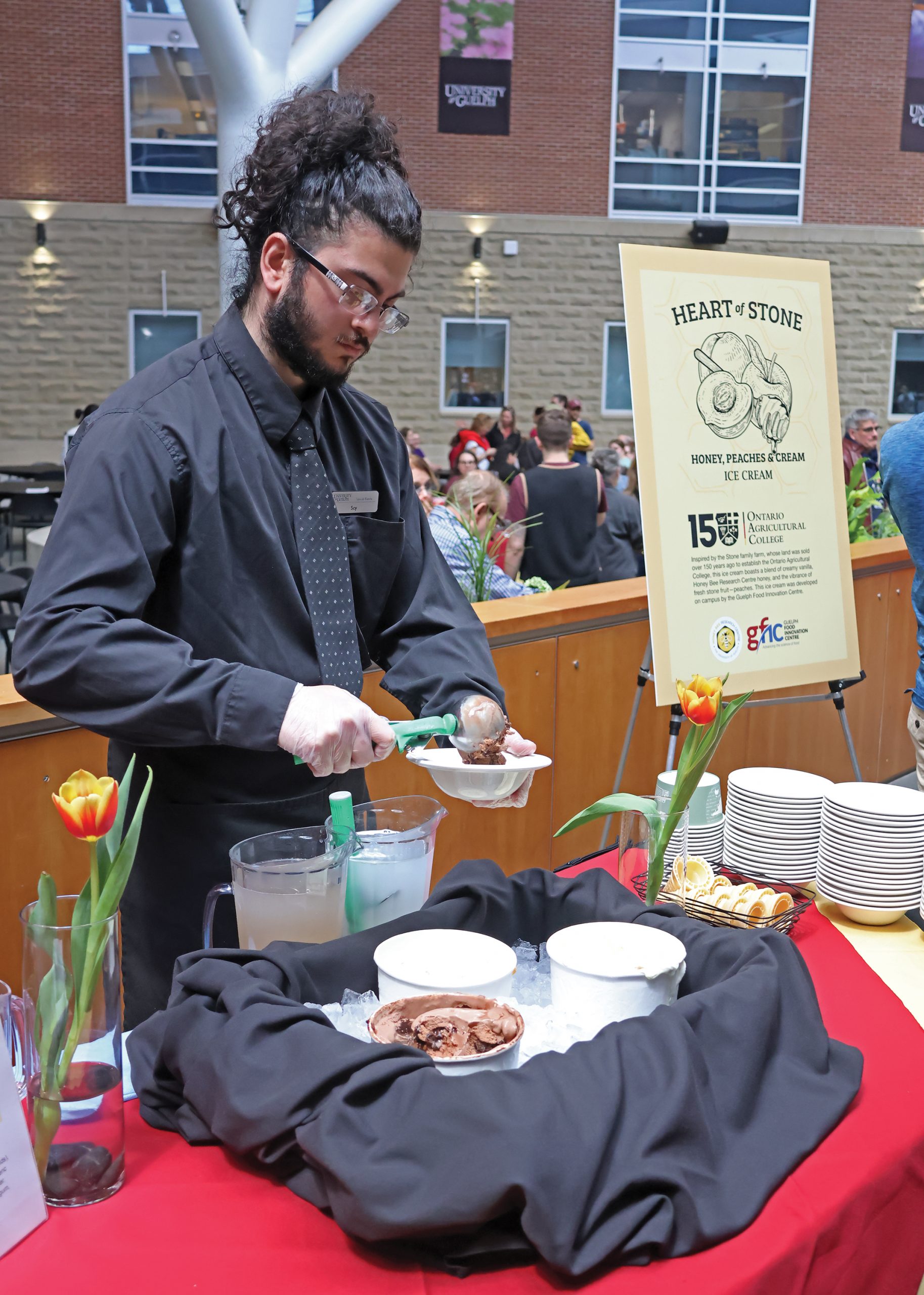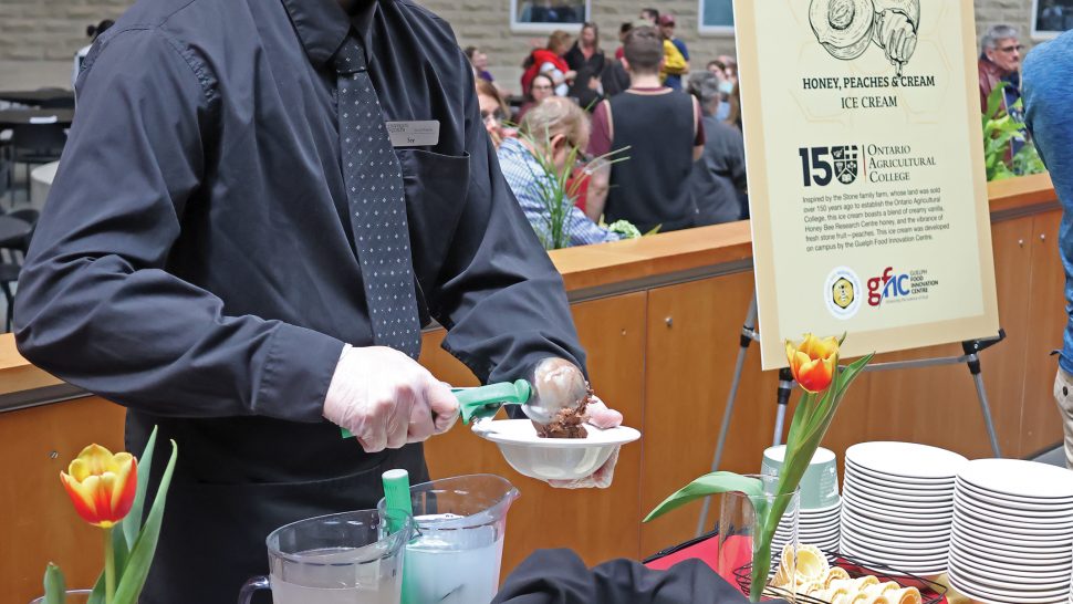 GUELPH – As staff and students lined up in the University of Guelph’s Summerlee Science Complex to get a taste of a new ice cream flavour, it might have appeared the May 1 event was all about food.