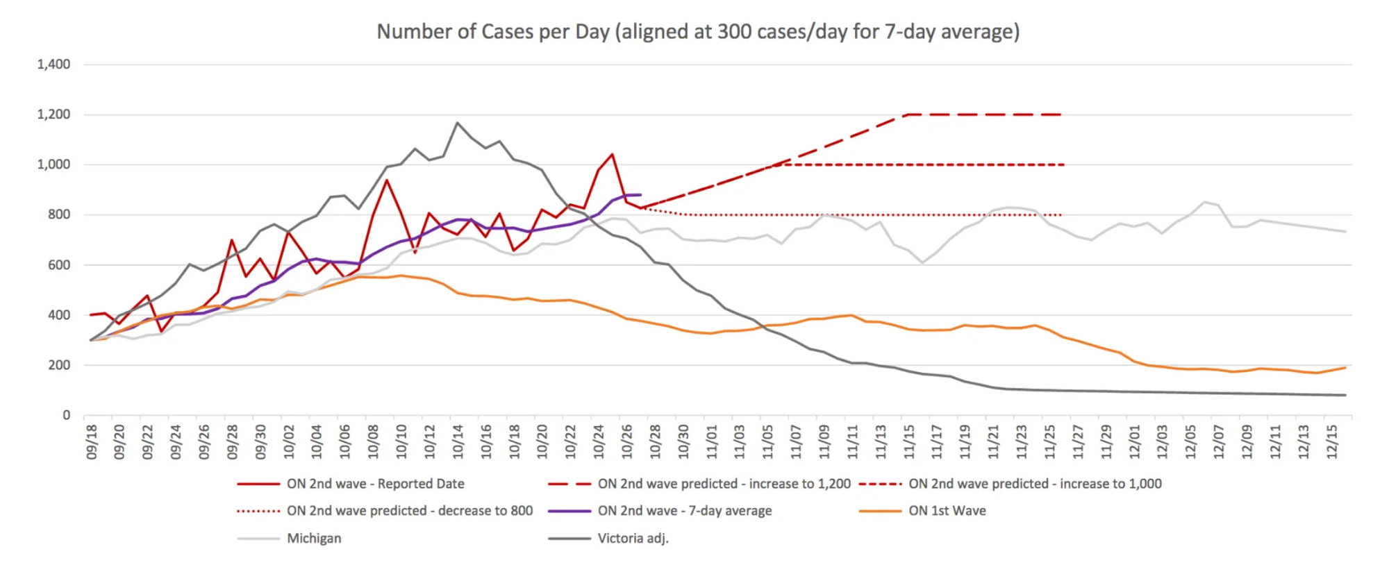 The worst-case scenario could see the seven-day average rise to 1,000 to 1,200 cases a day for most of November.