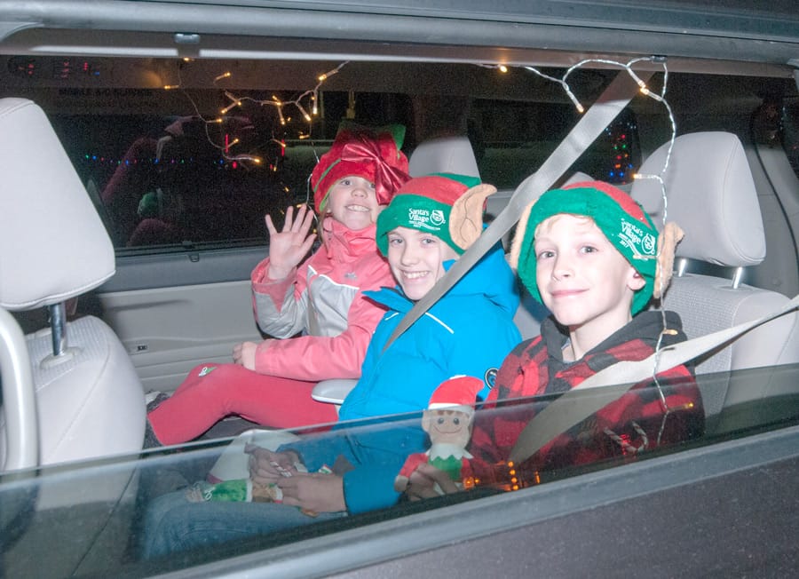 Reverse parade - The Optimist Club of Moorefield and Hensall Co-op (Drayton location) teamed up for the 2020 reverse Christmas Parade on Dec. 5 in Moorefield. Floats from businesses and organizations in Mapleton set up displays at Hensall Co-op Drayton and families toured through in their vehicles. Danielle, Myriam, and Nelson Brunet decorated the family van and donned their festive hats for the parade.