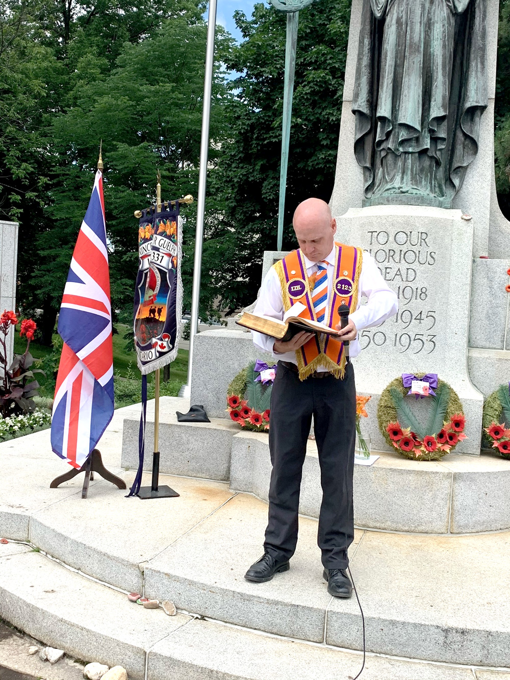 July 12 celebration – Members the Orange Order Prince Arthur Loyal Orange Lodge 1331 serving Guelph and Wellington County marked Orangemans’ Day, July 12th and The Glorious Revolution at a service and commemoration event at the Guelph Cenotaph on July.