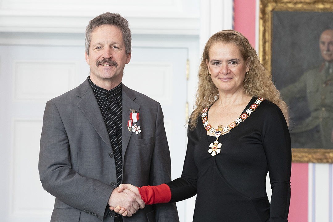High honour – Jim Estill, left, CEO of Danby Appliances in Guelph-Eramosa, was one of 40 individuals to receive the Order of Canada medal on March 14 from Governor General Julie Payette at a ceremony in Ottawa at Rideau Hall. Estill received the Order of Ontario medal in 2017 for his work in bringing hundreds of Syrian refugees to Guelph. Payette said Estill’s ongoing “contributions to the Guelph and Waterloo technology communities” and his “philanthropic efforts benefitting refugees” contributed to his induction to the Order of Canada.  Photo by Sgt. Johanie Maheu, Rideau Hall