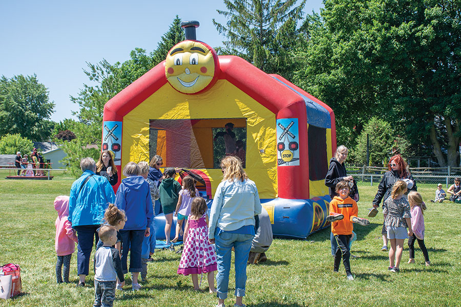 The event featured railroad-themed bouncy castles, a free barbecue courtesy of the Lions Club and a chance to try out handcars at the Palmerston Railway Heritage Museum.