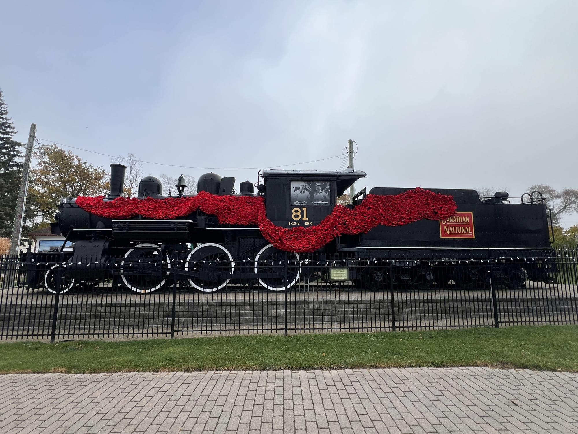 The installation is a large durable net which gets covered in hundreds of poppies to then be attached to the Palmerston Old 81 Steam Engine in the downtown core.