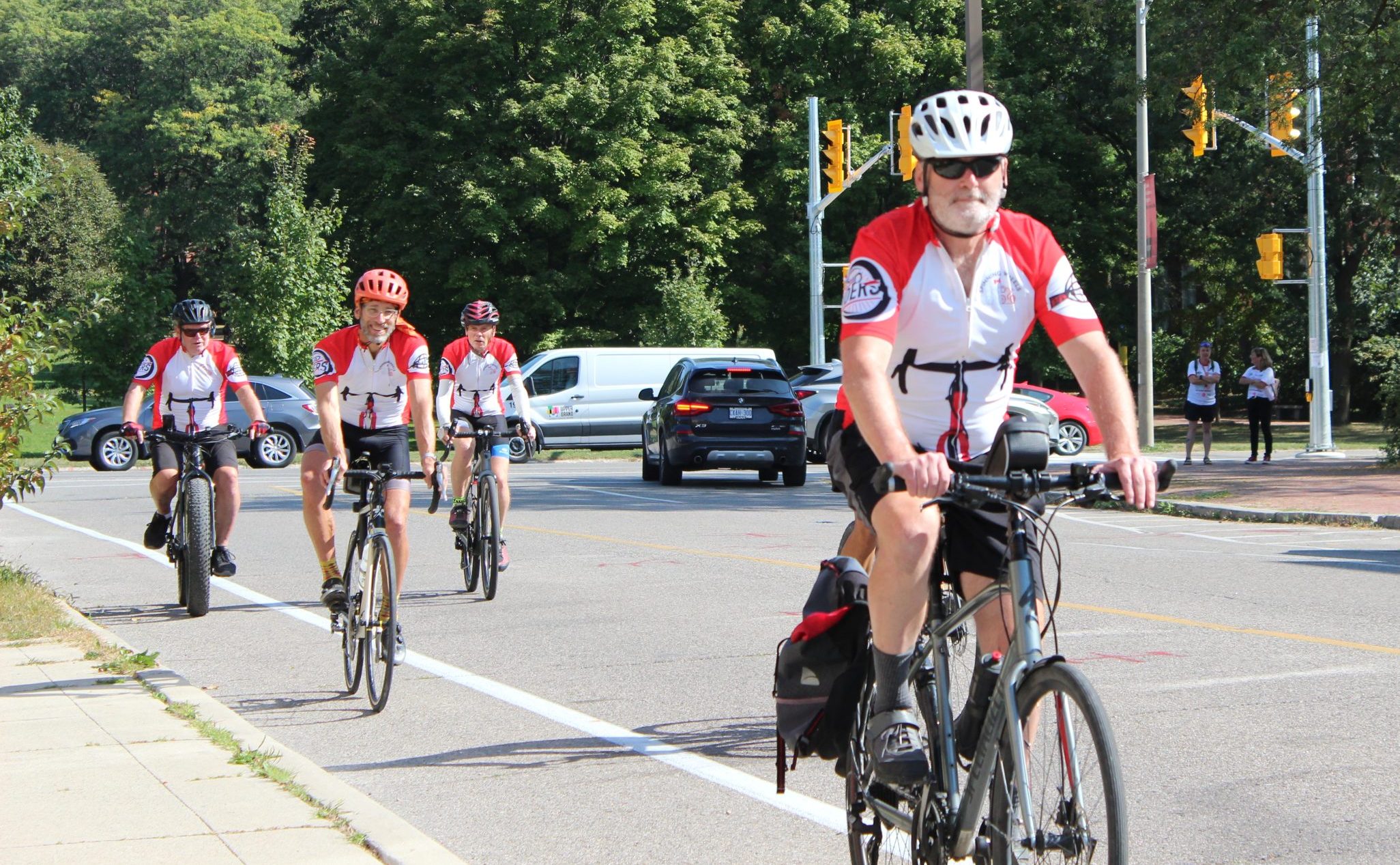 GUELPH – Spinning Wheels, a Parkinson’s awareness cycling group, made a pit stop at the University of Guelph to meet with cardiovascular physiology researcher Dr. Philip Millar and his research team on Sept. 19.
