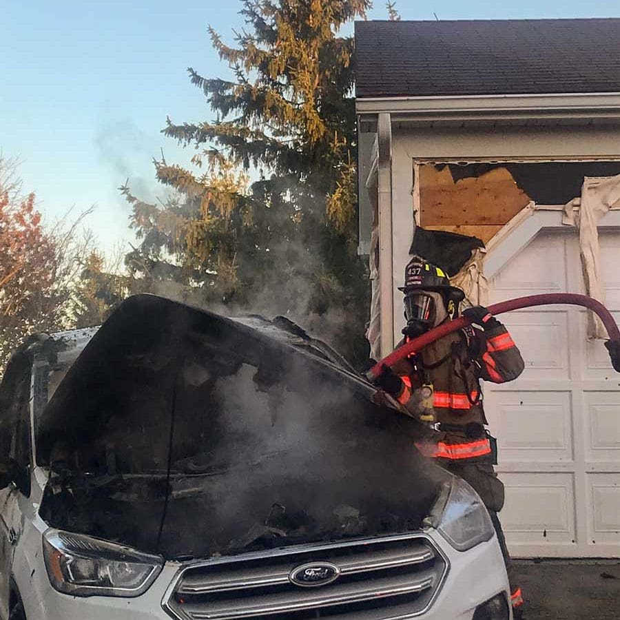 “Just prior to our arrival the vehicle, which was parked fairly close to the garage of the house, the attached garage, the heat from the fire had extended to the house and melted some of the vinyl siding off the front and the side of the house as well as melted some siding off a neighbour’s house.”