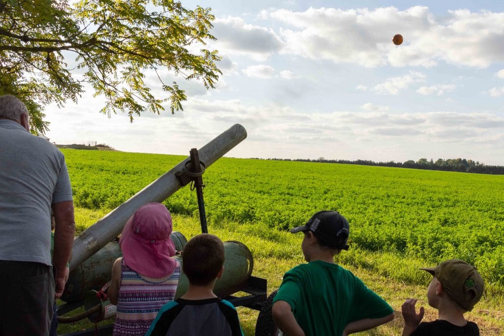 Children got to carve pumpkins, take tractor- and horse-drawn rides, jump in a bouncy castle, and of course, try their hand at the locally-famous pumpkin cannon.