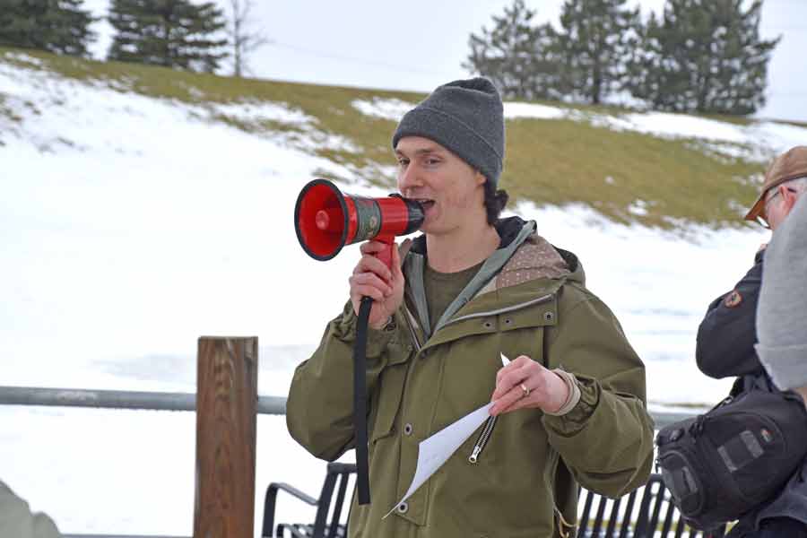 A few dozen people came out for the event on the damp, foggy day.