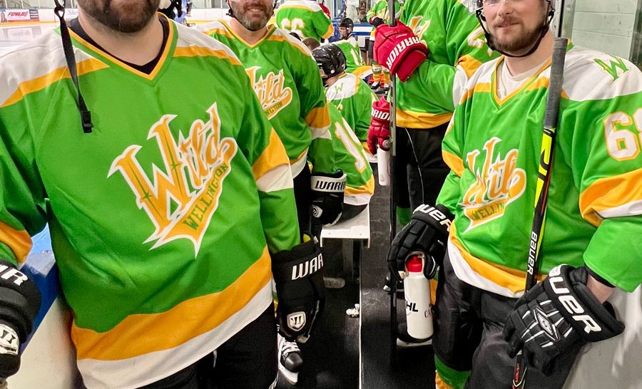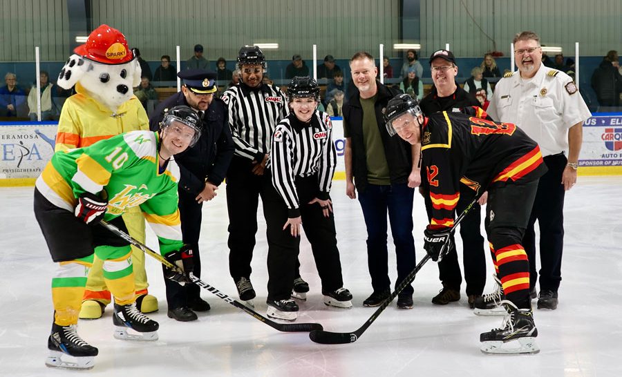 FERGUS – Wellington OPP members get ready to battle on the ice against members of Centre Wellington Fire and Rescue Services.