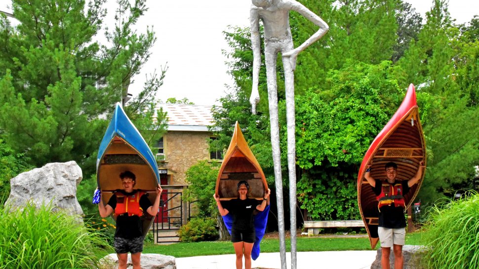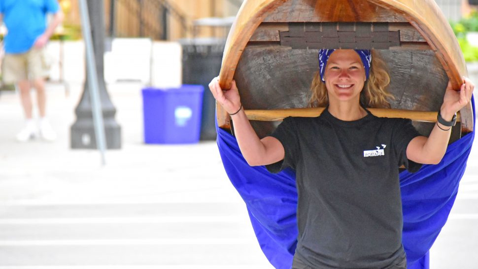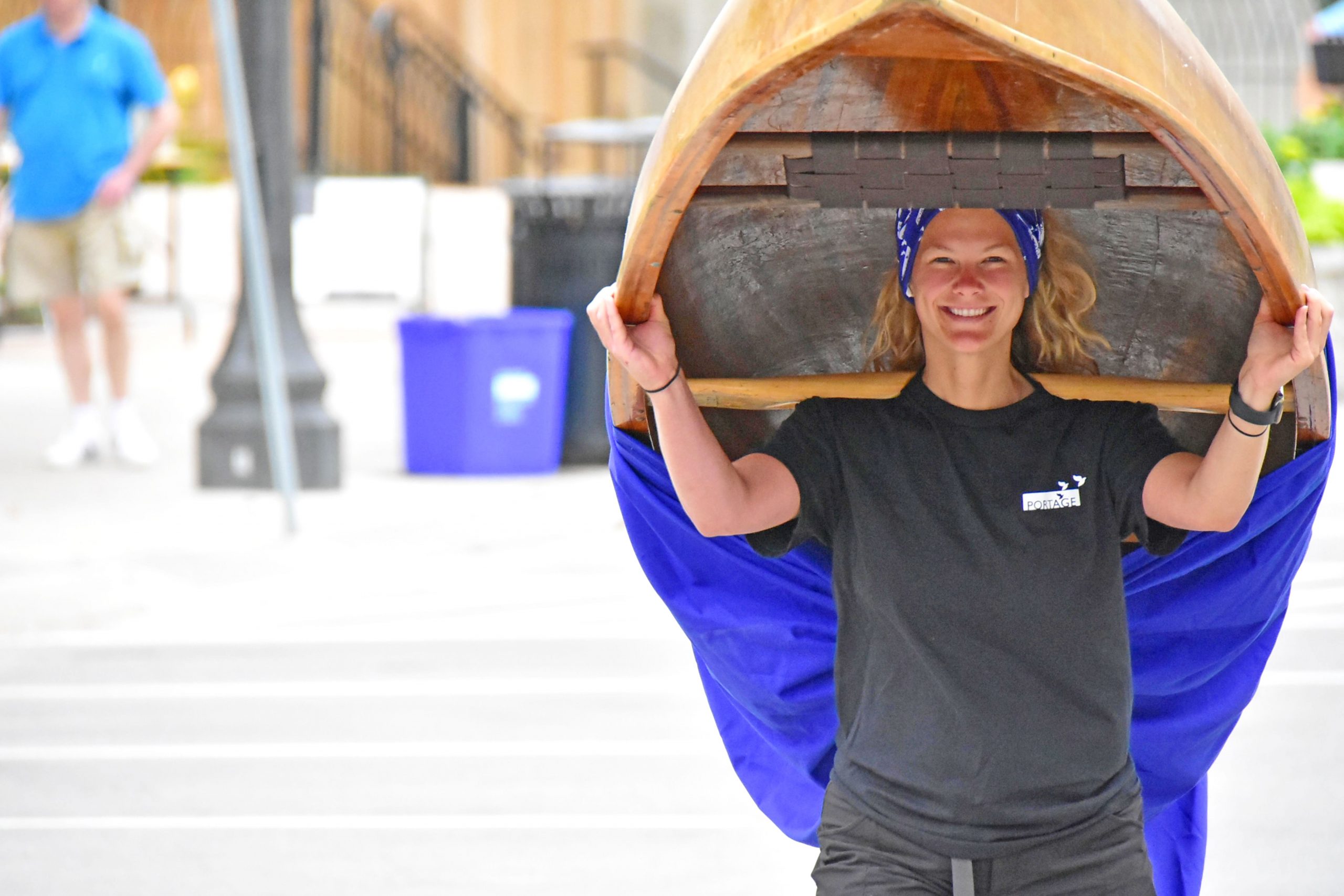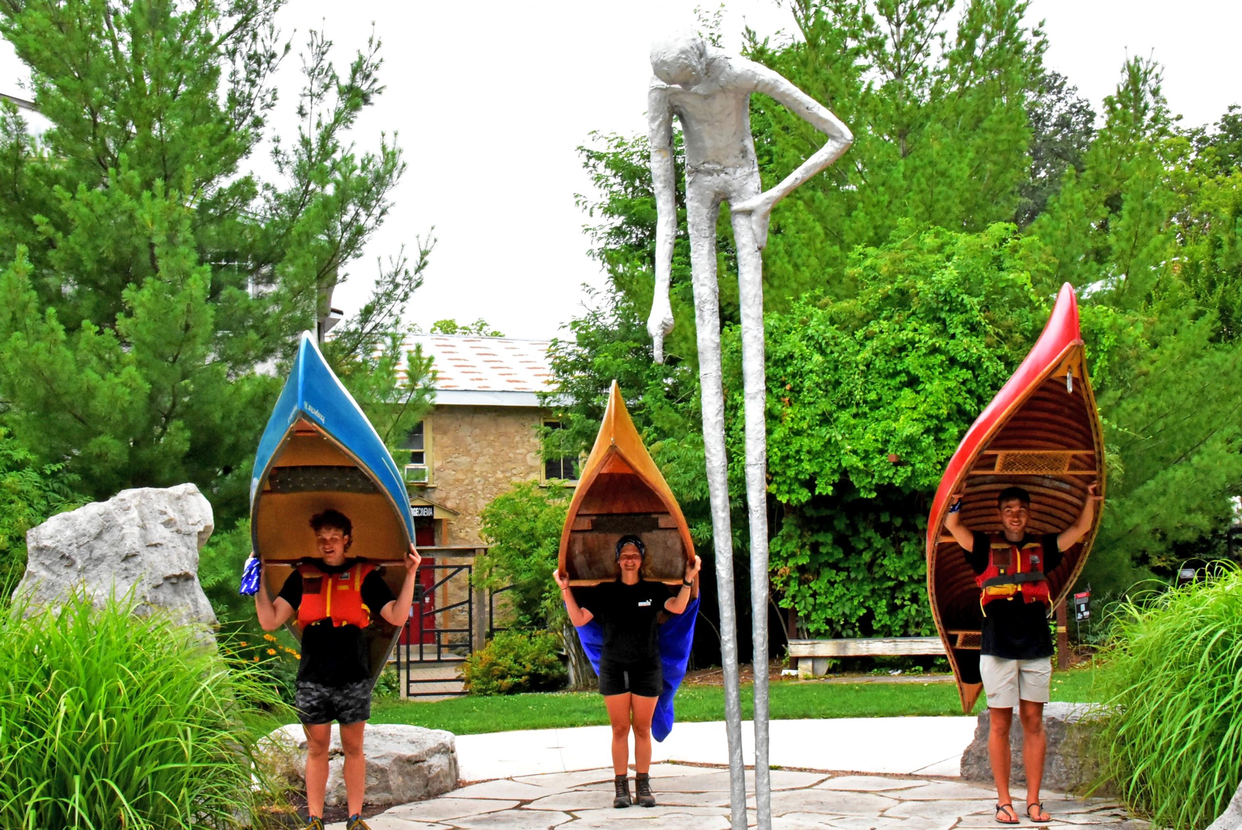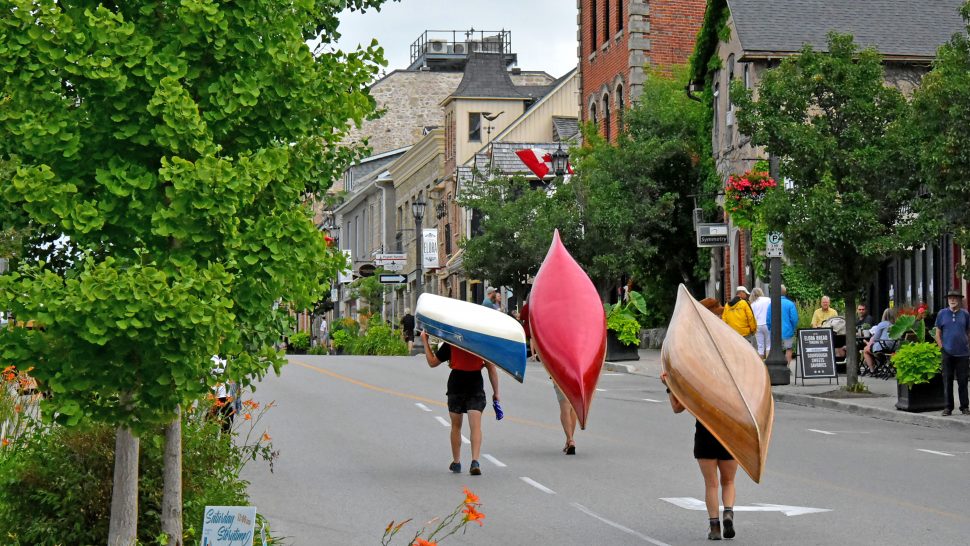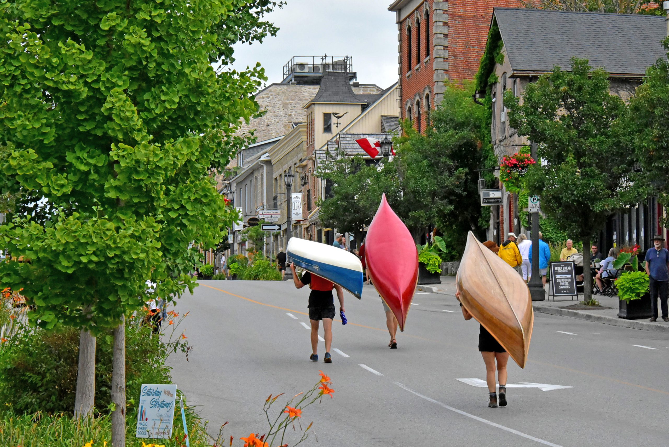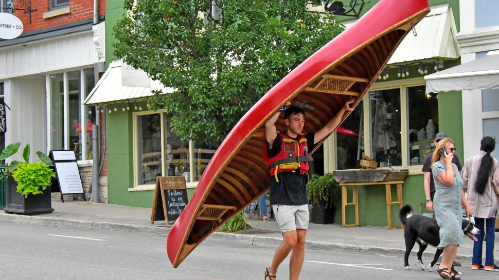 Portaging for Portage – James Scott, owner of the Elora Paddle Company, travelled nearly 8km up and down Mill and Metcalfe Streets in Elora on July 30 in support of Portage for Portage to raise awareness for the residential program at Portage, which helps youth through their addiction. Two other people joined Scott on his trek, each carrying a 70-pound canoe: Ashley-Ann Maginnis, associate director of development at Portage, and Elijah McQueen. This year nearly $1,000 was donated to the team.