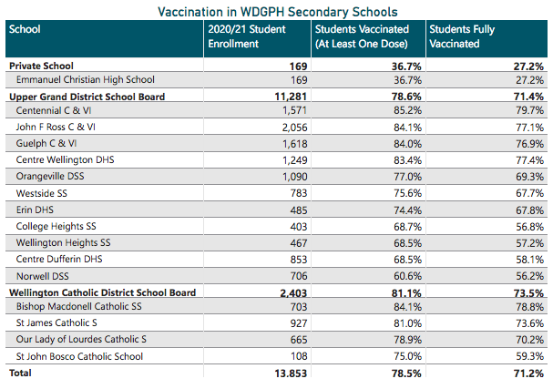 In Wellington County 72.4% of eligible residents are two-dose vaccinated as of Aug. 30, behind Dufferin County (74.4%) and significantly behind Guelph (83.9%).