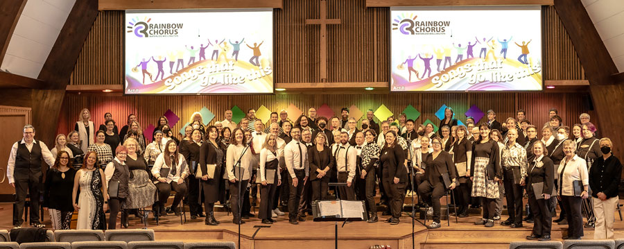 The Rainbow Chorus of Waterloo Wellington is a community choir that welcomes members of all genders, sexualities, gender expressions, and allies of the 2SLGBTQIA+ community.