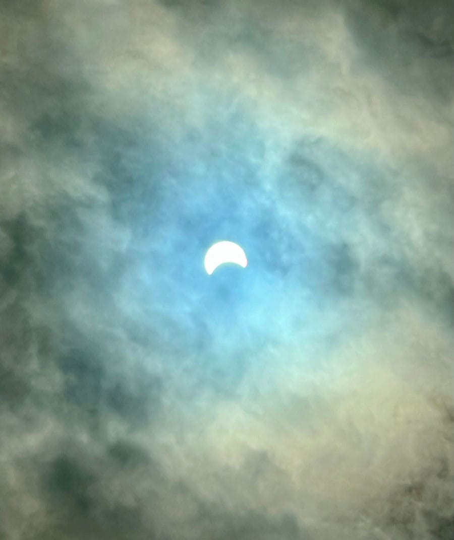 WELLINGTON COUNTY – The skies cleared just in time in many parts of Wellington County on Monday as the moon blotted out most of the sun at 3:18pm. Birdsong ceased and the temperature dropped a few degrees as the moon’s shadow cast a gloomy pall across the Earth. These images were captured in Inverhaugh.