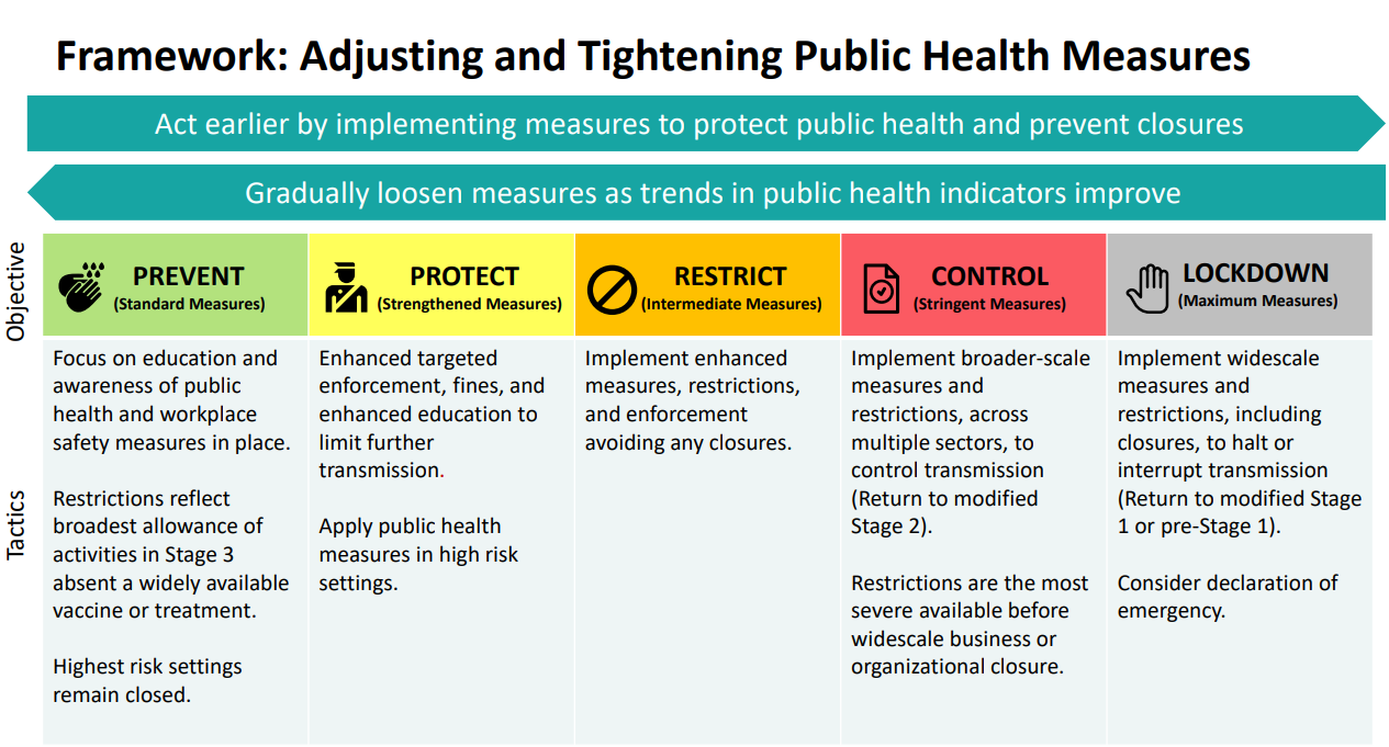The advantage of this new system, officials say, is it allows for clear and consistent criteria on when and why restrictions should be imposed, and when they can be lifted.