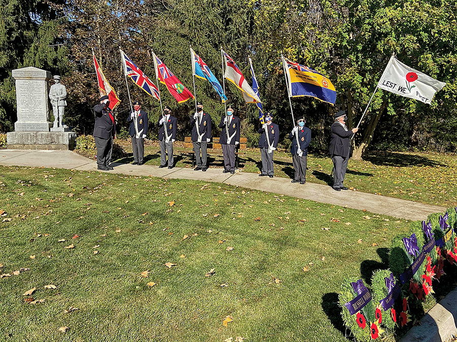 Remembrance – Fergus Legion Branch 275 held a Remembrance ceremony at noon at the Belwood Cenotaph on Nov. 7. The event began with the Colour Party marching in, followed by laying of wreaths and reading the names of the war dead. It was a sombre, respectful and fitting affair with about 50 people in attendance.