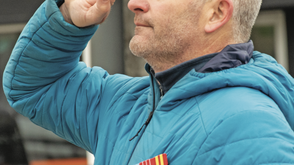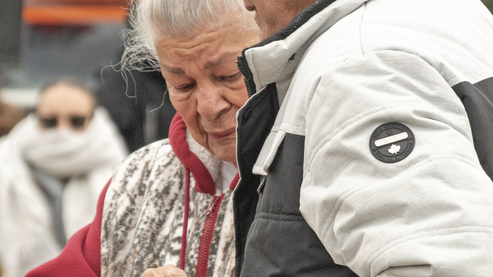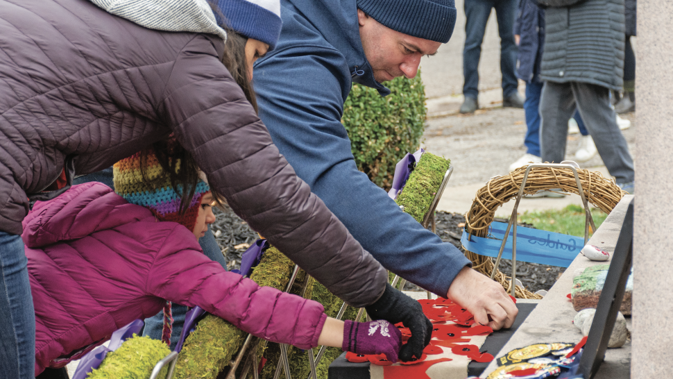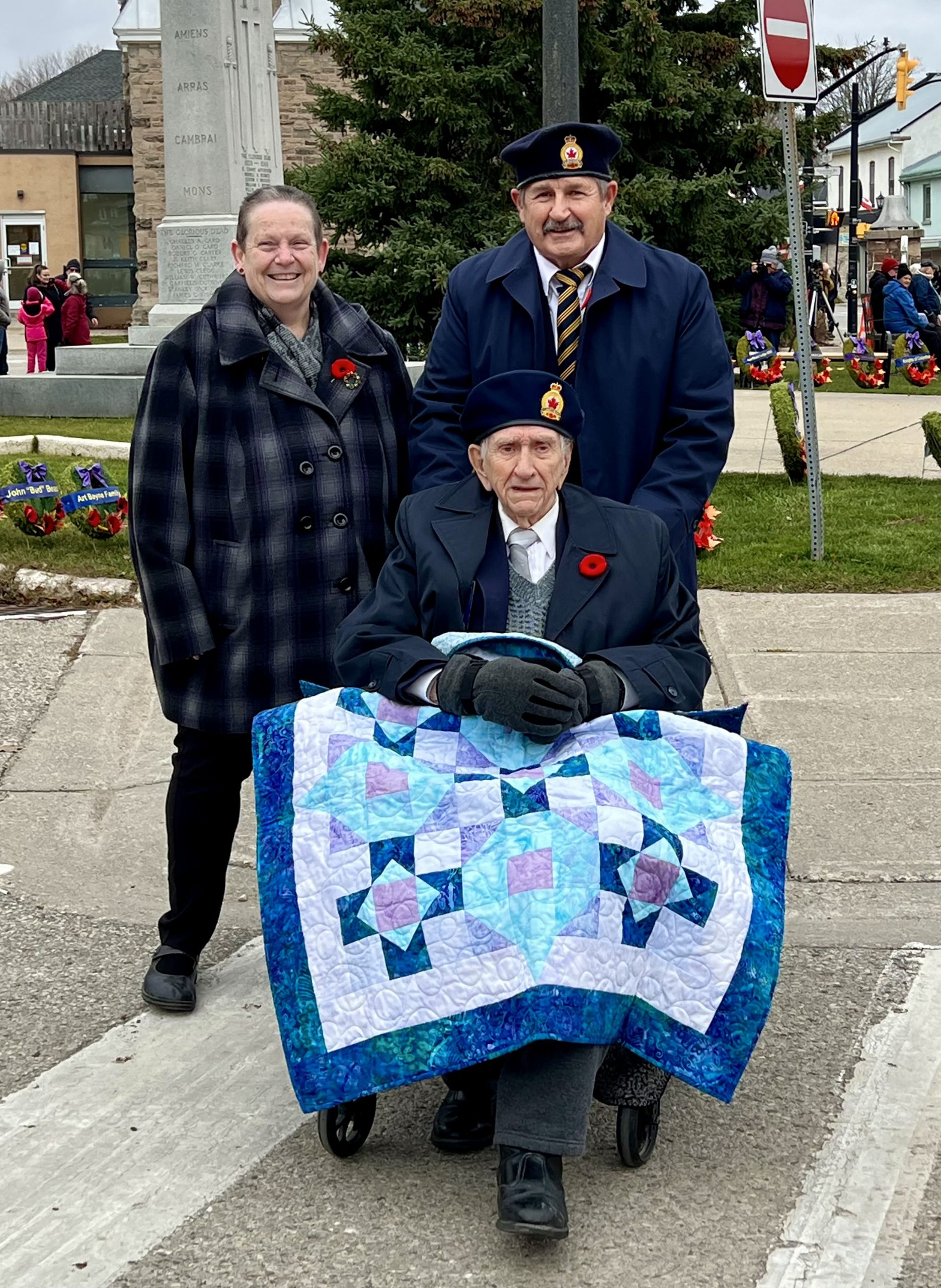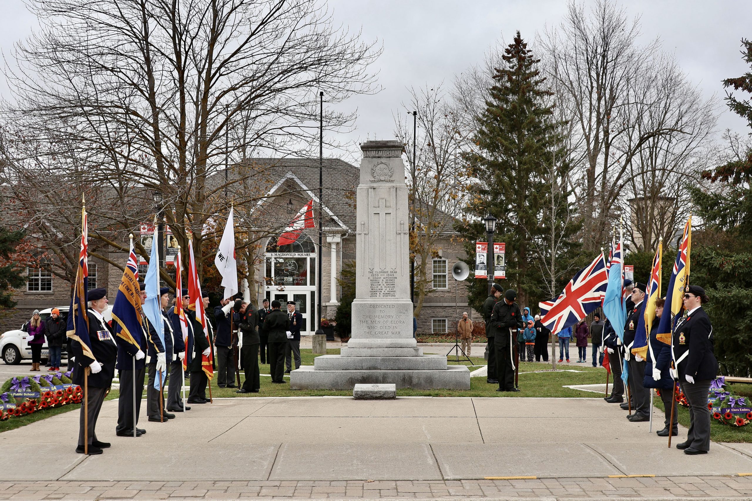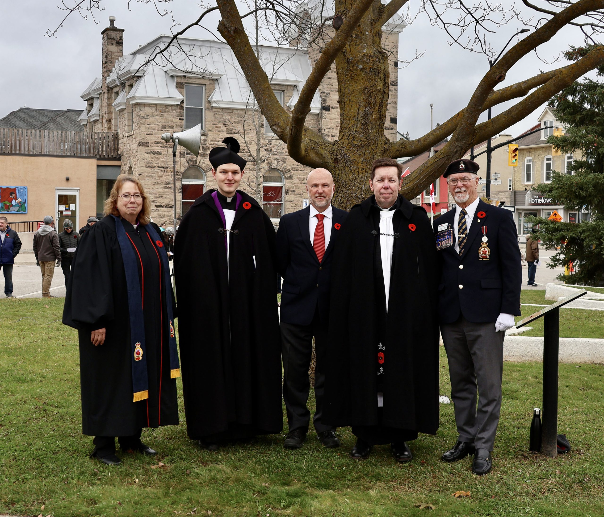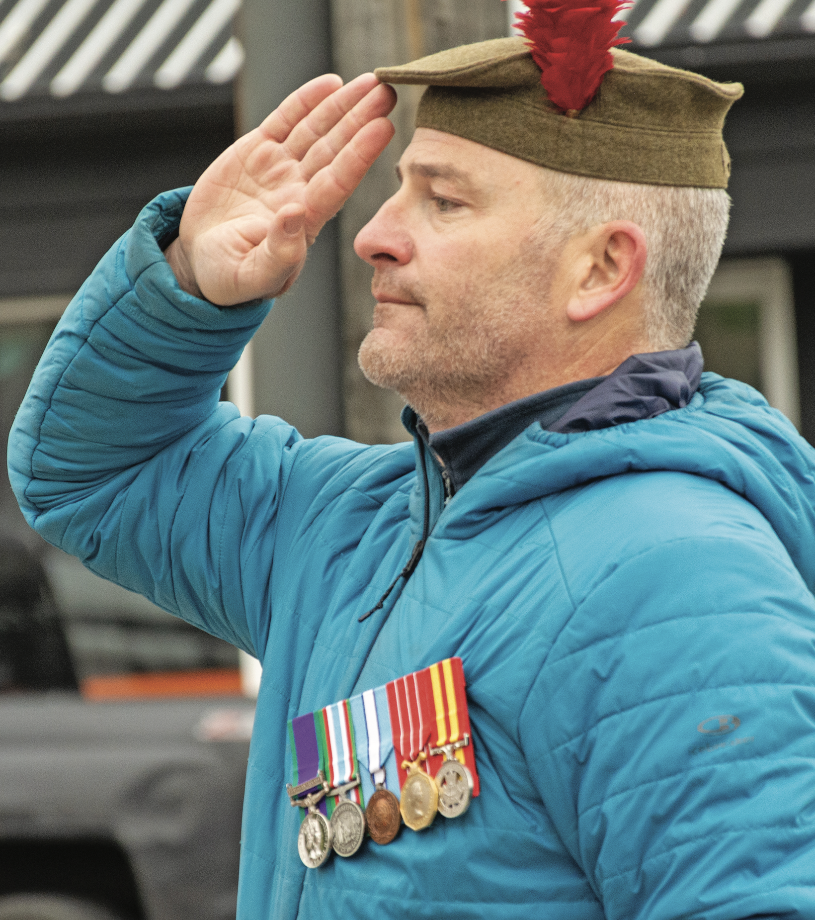 On Remembrance Day in Fergus, Shelley Altman, right, with friend Laurie Gracey, left, brought a photo of her late father-in-law Robert Altman, who served in the Second World War. He was in Squadron 429, and served as a mechanic until turning 43 years old. He came from Poland and served in the Canadian Army. Shelly said he will always remain in her prayers, and she lightes a candle for him each year on Nov. 11. Photo by Bill Longshaw