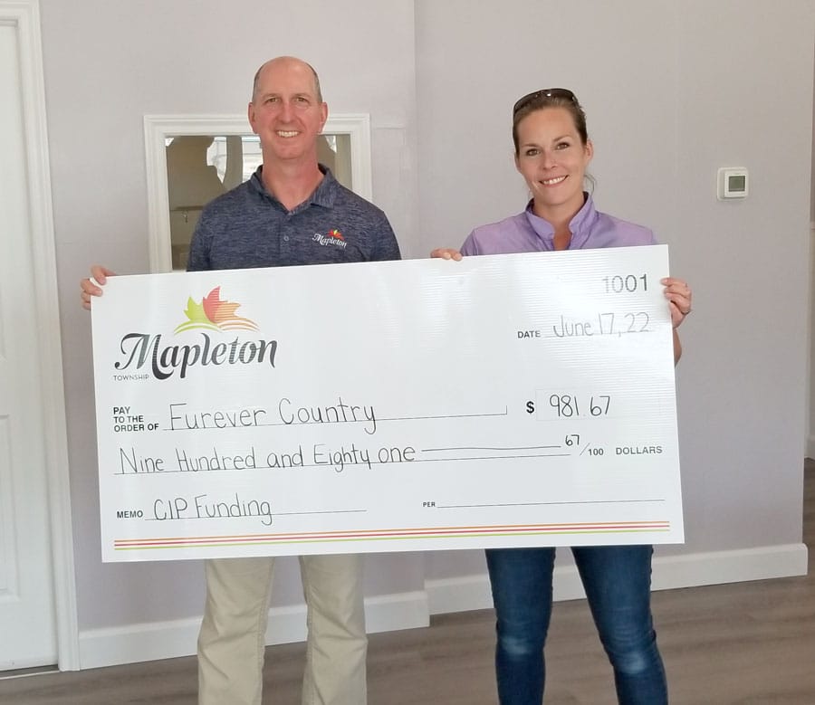 Ribbon cutting - Furever Country Grooming held a ribbon cutting ceremony on June 17. From left: Mapleton councillor Michael Martin, Mayor Gregg Davidson, Kadence Hartman, Colton Hartman, owner Katie Hartman, Chris Hartman and councilor Marlene Ottens. The business moved from St. Agatha to 89 Wellington Street, Unit 1, in Drayton. The Hartmans resided in Drayton for nine years and Katie has over 22 years experience grooming dogs.