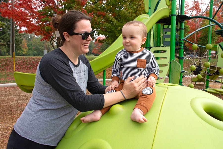 There’s now a new playground structure with a couple of slides, climbing and rope apparatuses and shade sails, as well as a sandbox.