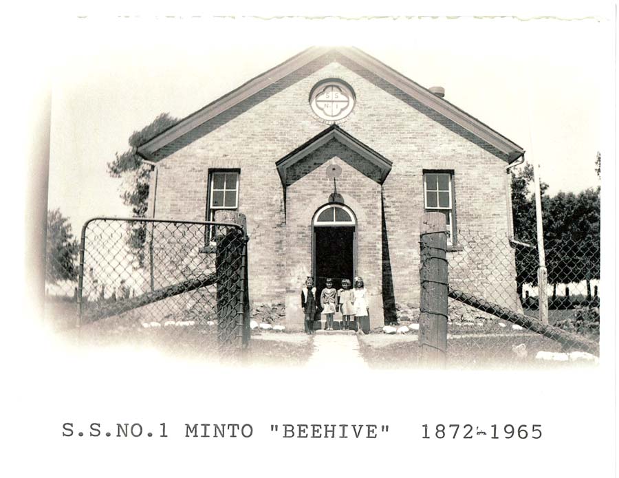 Time marched on, and by the 1960s the government decided to close all country one-room school houses and bus students to a central location. For Beehive area children this meant transporting to the new Minto-Clifford Public School on the outskirts of Harriston. All the township school sites were eventually sold and several lots were big enough to be converted to private residences. Beehive was not, so the building was eventually torn down.