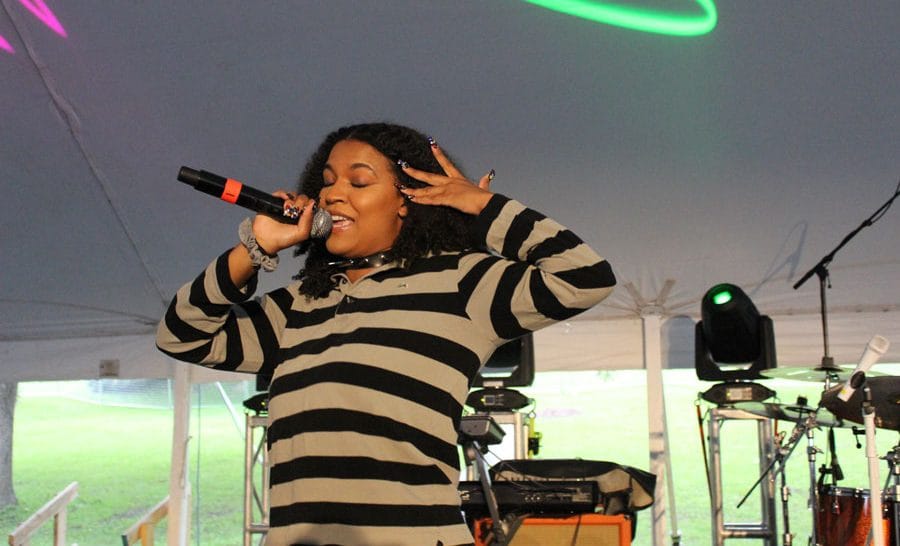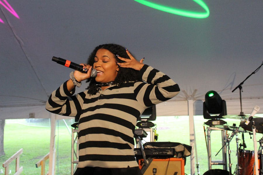 Wellington County’s Boo Radley Project is a staple at Riverfest Elora, as this was their sixth year hosting karaoke at the festival. The baroque-indie-funk septet plays an impressive range of requested songs while festival-goers take a turn with the mic.
