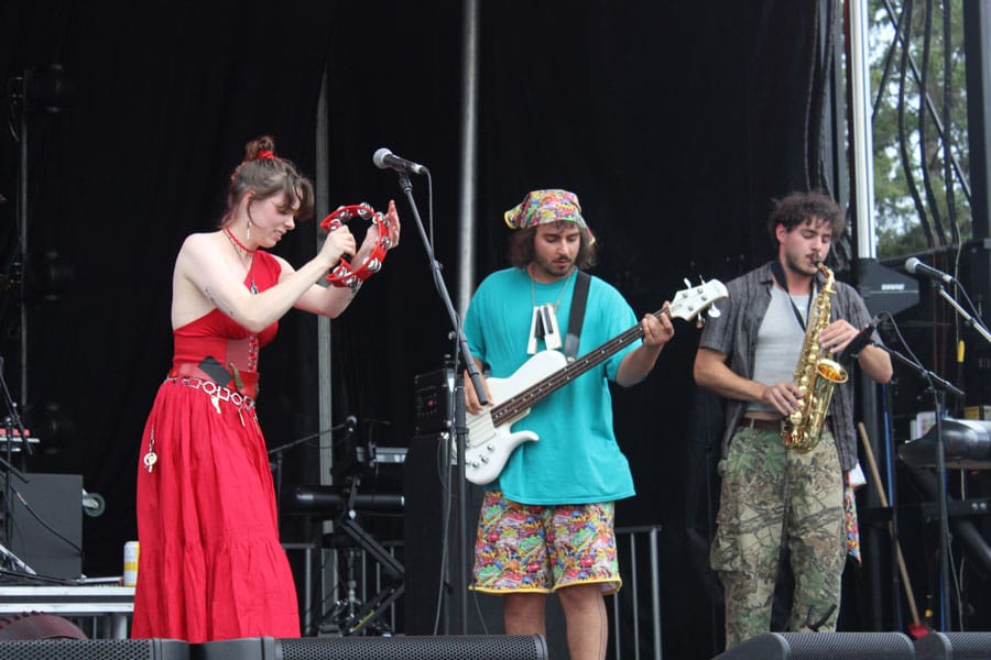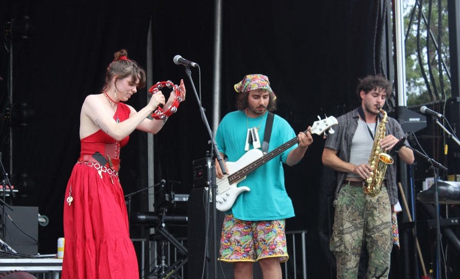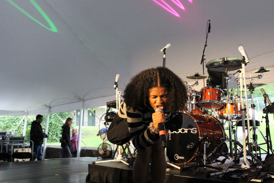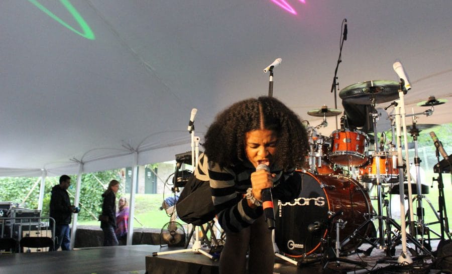 Students from The Adrian Jones Music School Rock Band Camp opened the festival on Friday afternoon with a Rivercital in the Koop Tent.