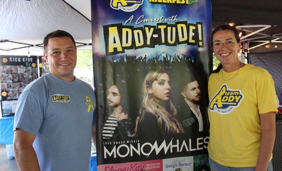 Addy’s parents, Jessica and Dave Hill, were both at the festival, raising money and promoting the upcoming Concert with Addy-tude, a benefit show presented in partnership with Riverfest that will take place on Sept. 23.