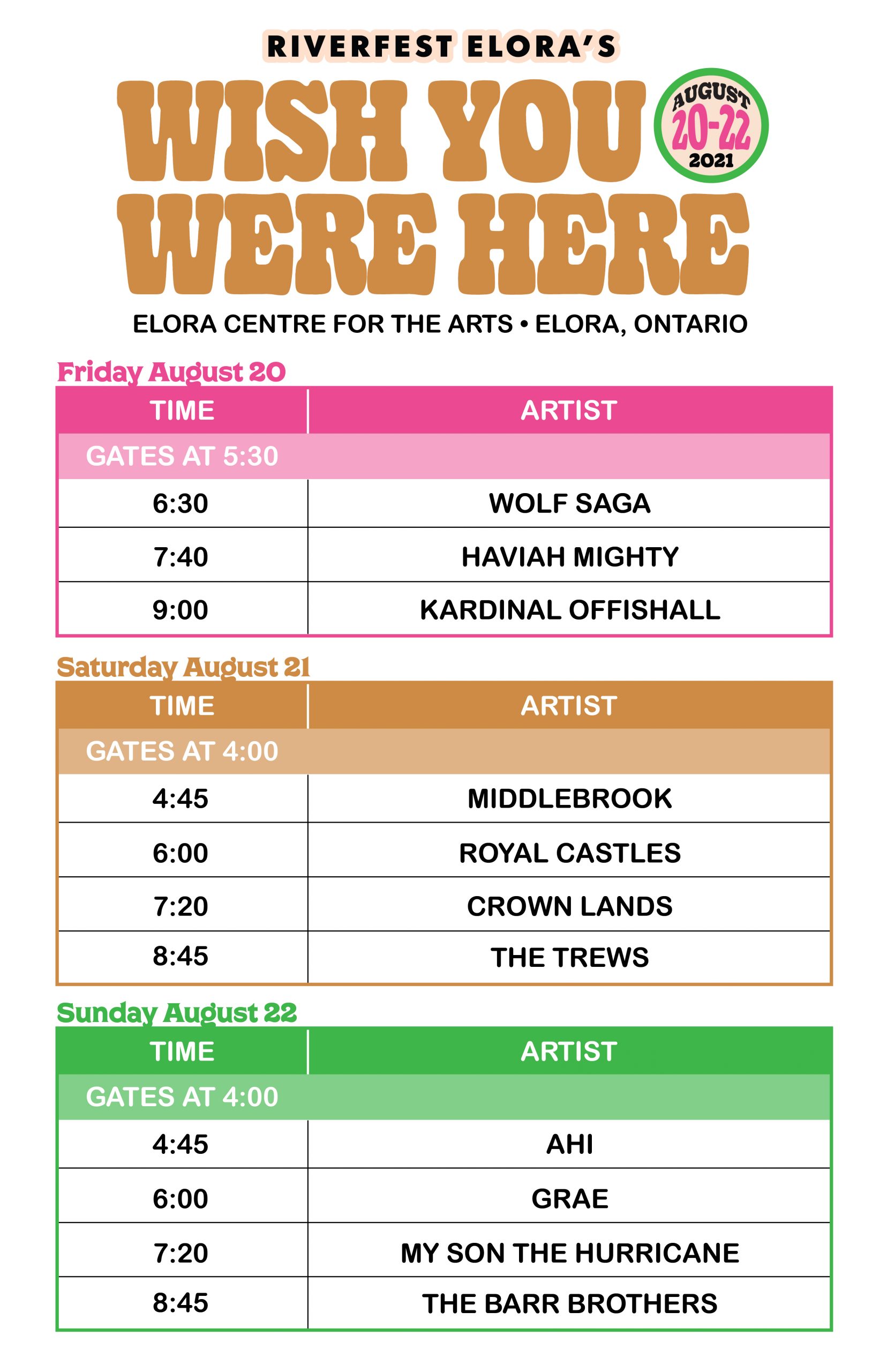 “Wish You Were Here,” billed as a “carefully executed and socially distanced mini-festival,” is set for Aug. 20 to 22 at the Elora Centre for the Arts, where Riverfest began in 2009.