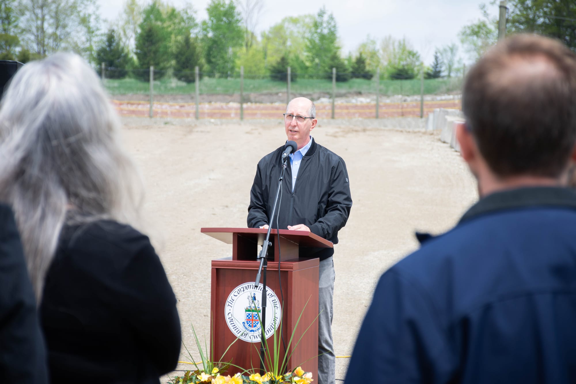 County waste services committee chair and Mapleton Mayor Gregg Davidson opened with remarks against a backdrop of heavy machinery, lauding the “monumental” forward thinking of county staff and past and current councils, noting a new landfill hadn’t been opened in the province in more than two decades.