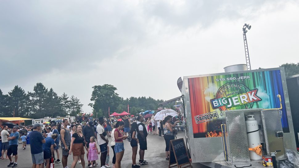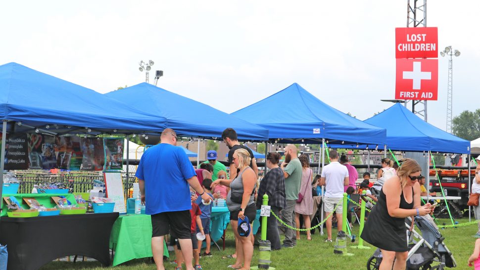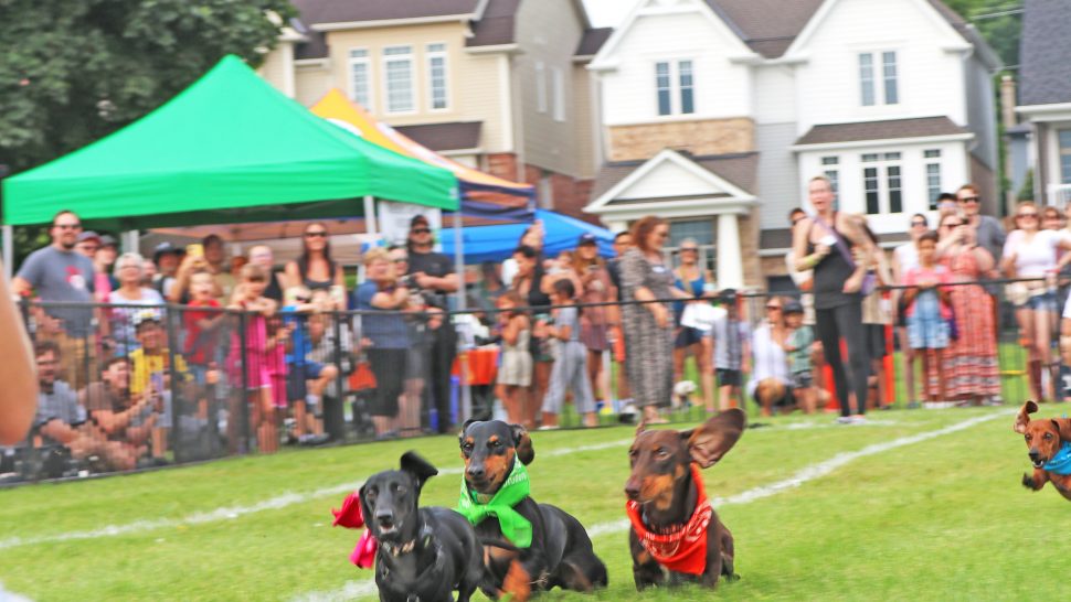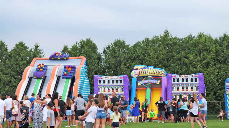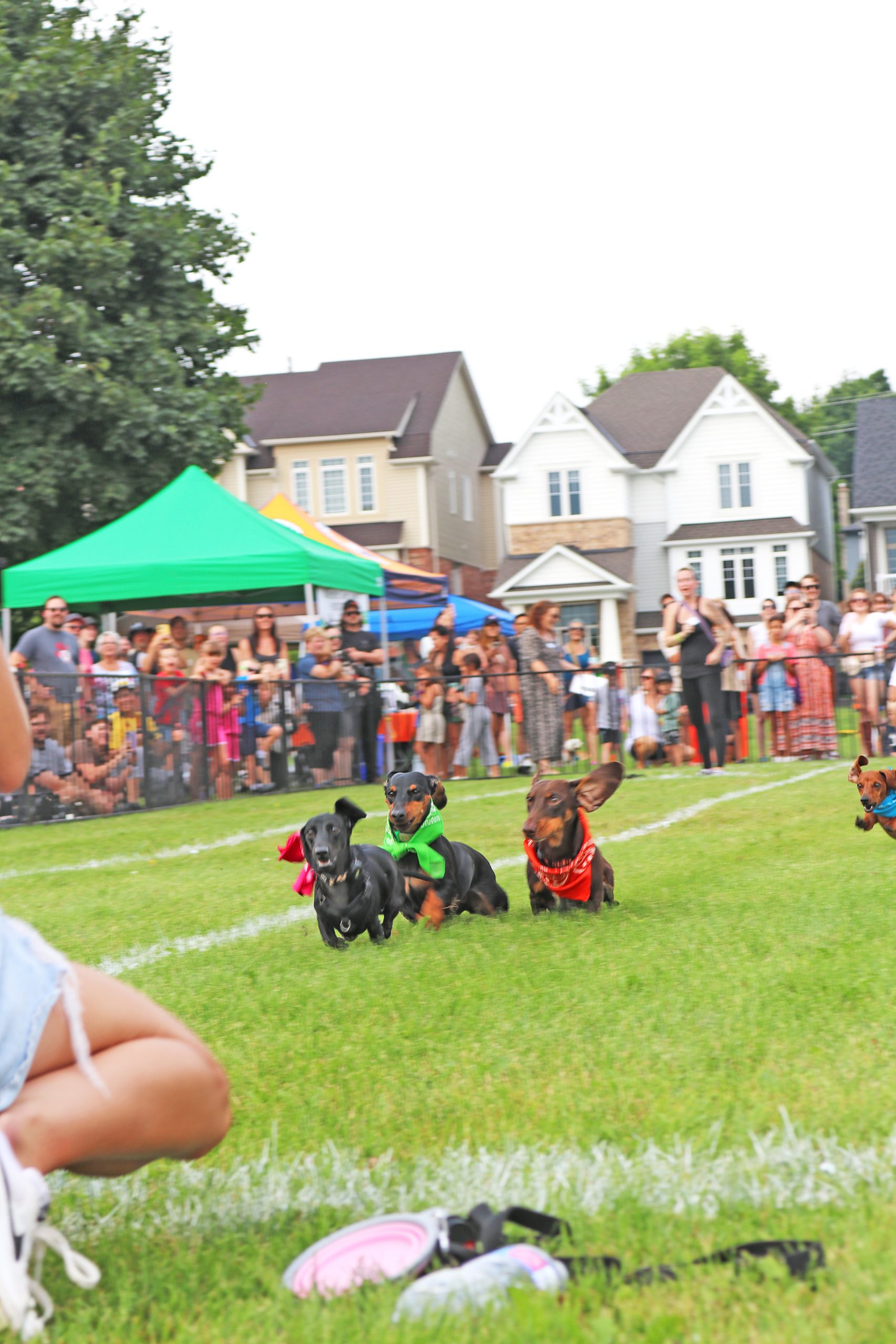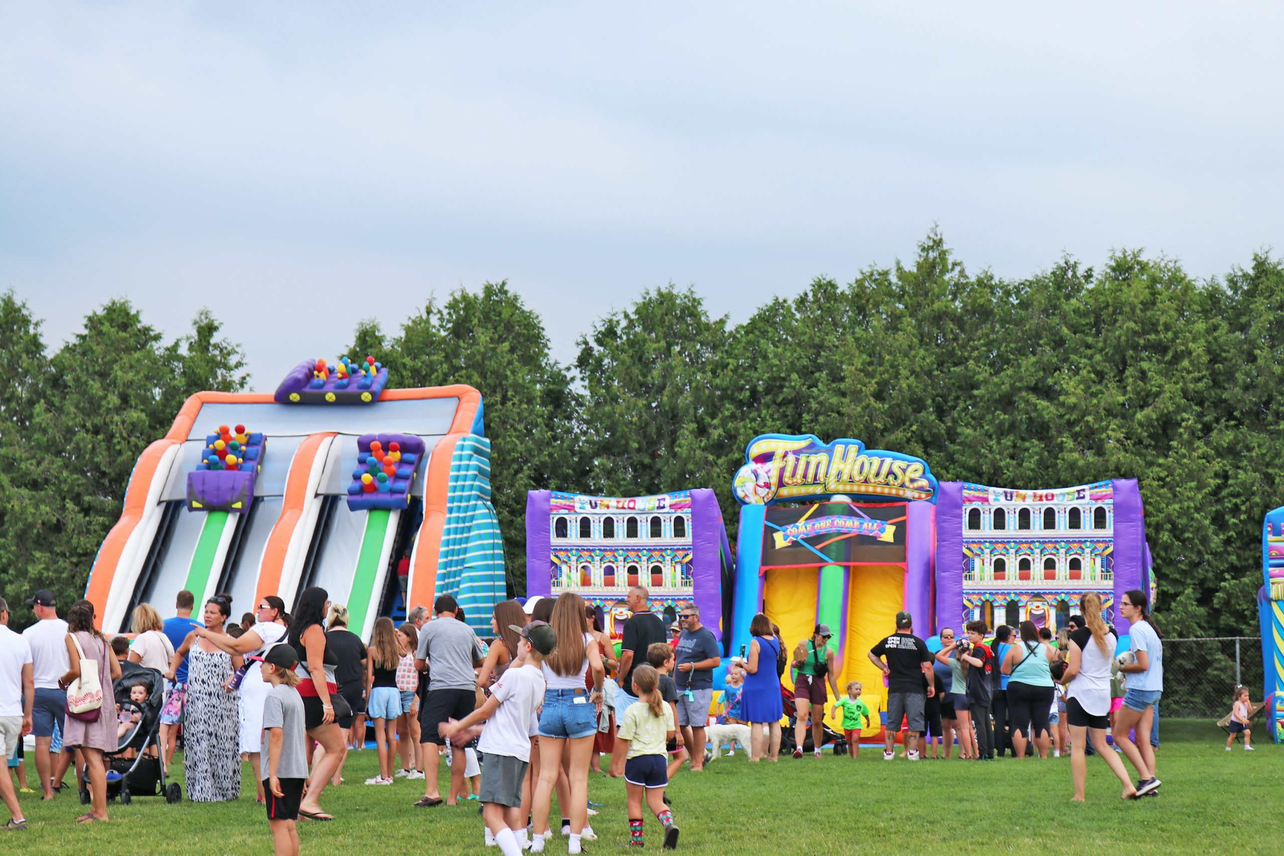 ROCKWOOD – Rockwood’s annual Party in the Park filled Rockmosa Park with celebration on Aug. 1, with tons of activities for community members and visitors to enjoy. Clockwise from top left: Wallace Harrington rides the fun house super slide; Elliot Anstett scales the climbing wall; Amber Garland takes the wheel in a fire truck; and Nic and Elena Di Tomsao cheer on Benny, one of the contestants in the popular wiener dog races.