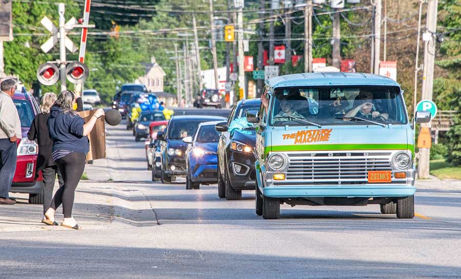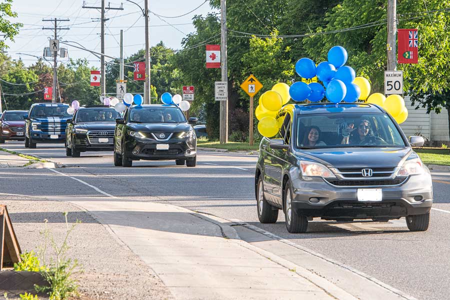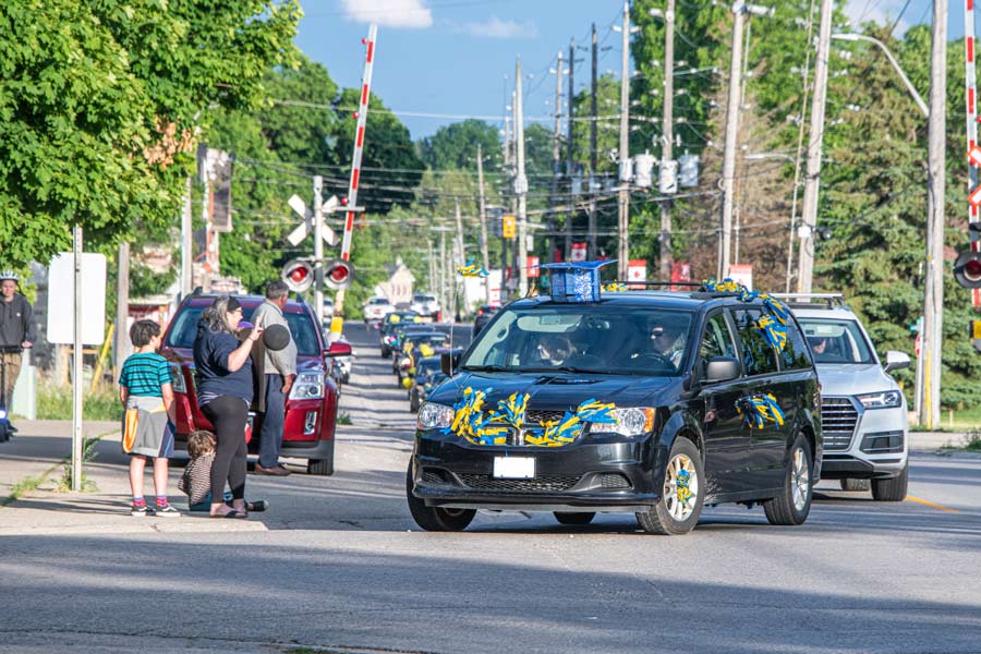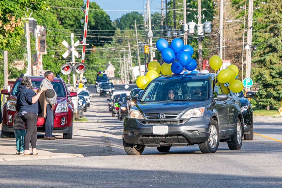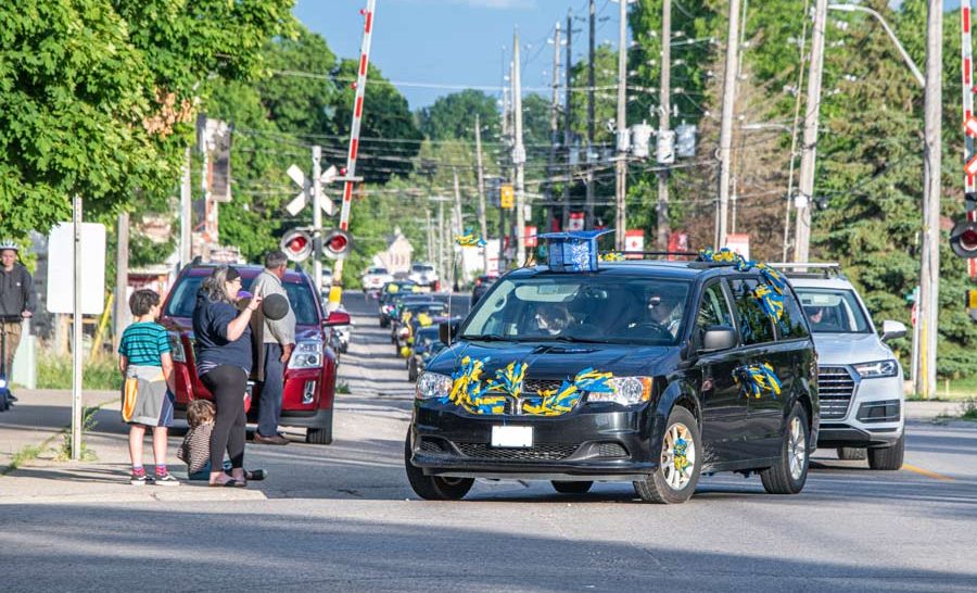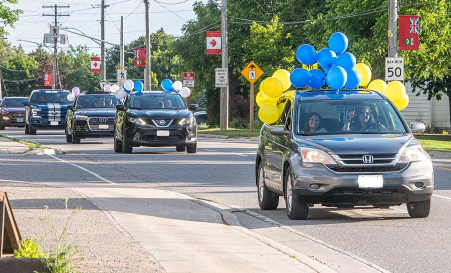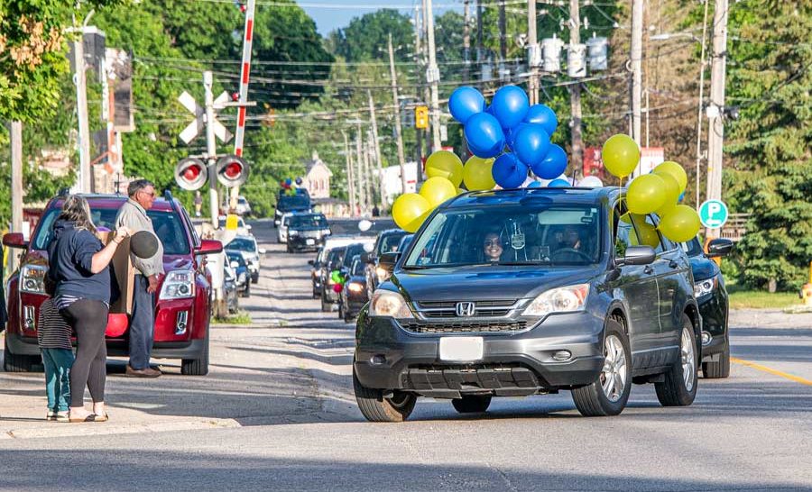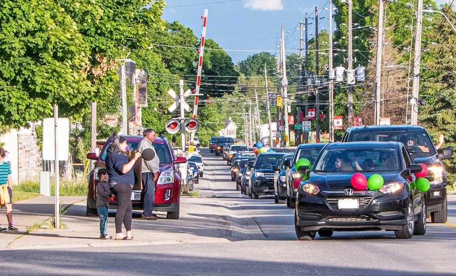 RCPS had 92 graduating Grade 8 students. Starting at 7pm, a lengthy procession of colourfully decorated cars paraded through Rockwood’s downtown and neighbourhood streets, honking as socially-distanced residents lined the sidewalks to cheer them on with congratulations.