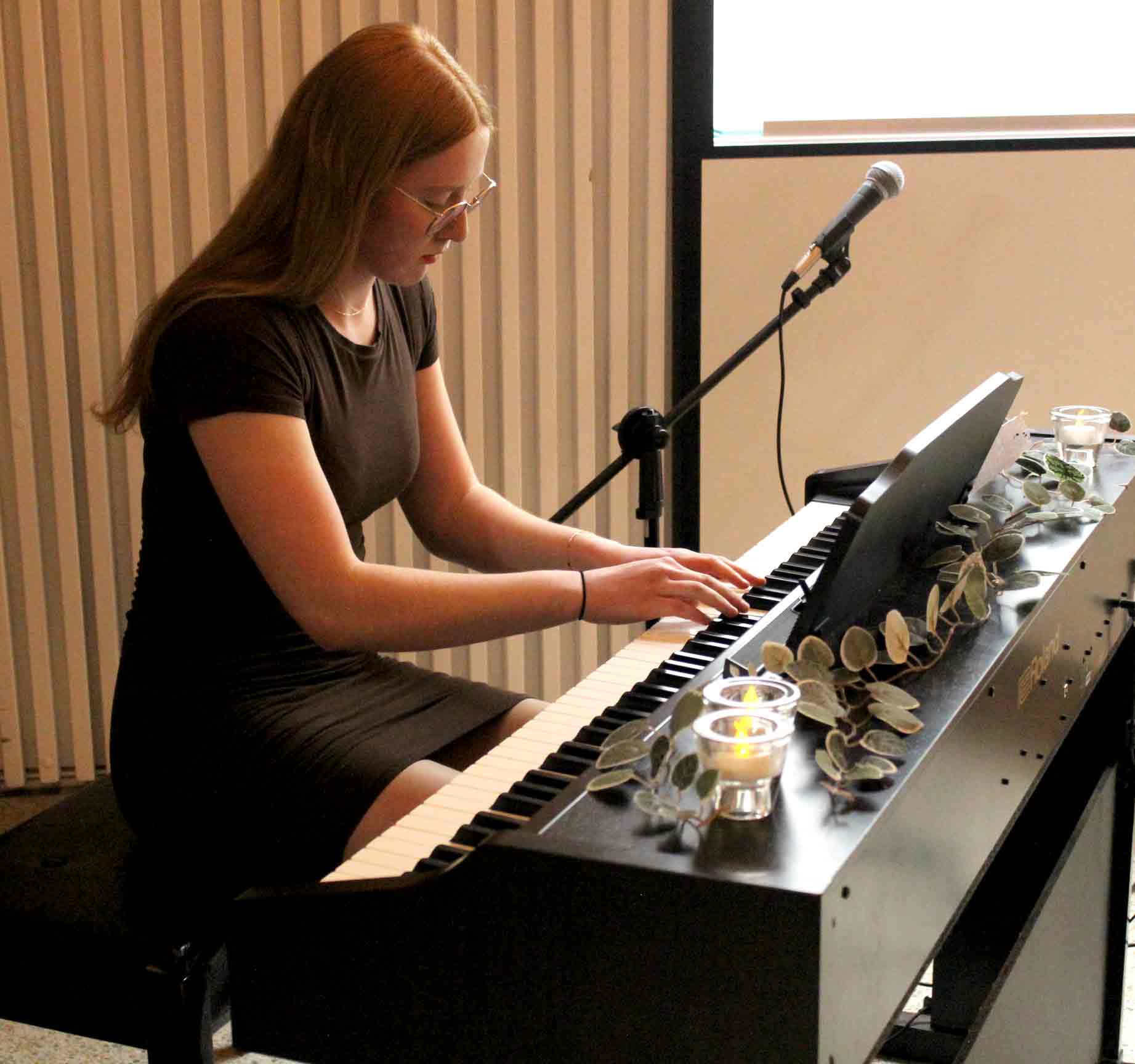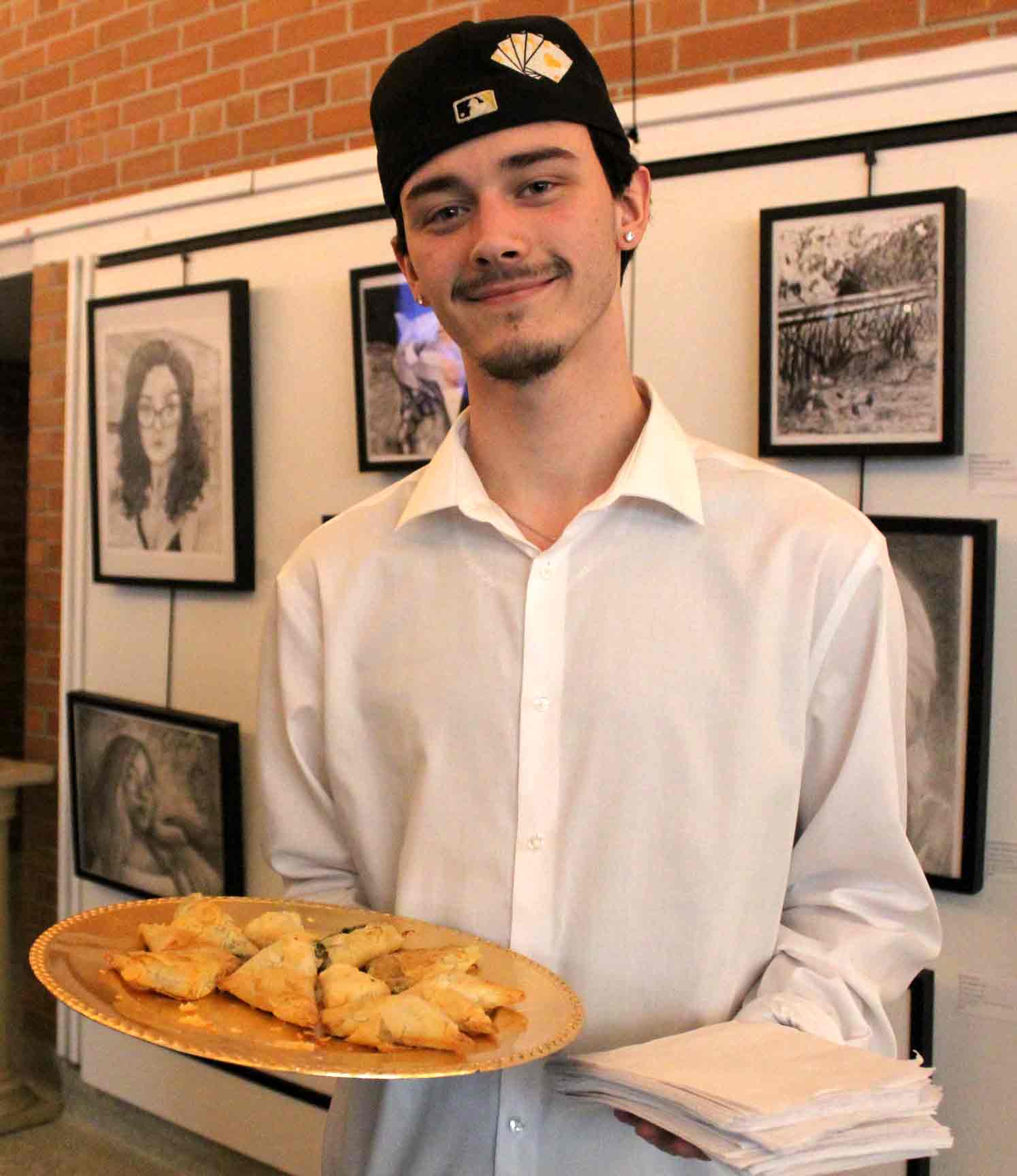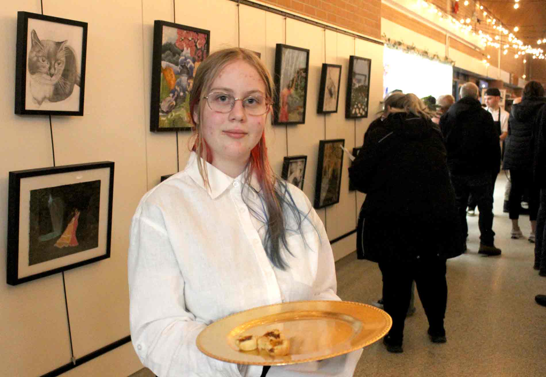 Families, students and school staff admired the artwork while listening to live piano music from student Brianna Schweitzer and snacking on hors d’oeuvres prepared and served by students.