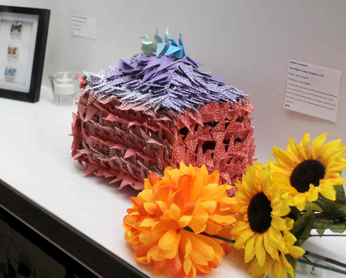 Jewels Jackson’s Stitches Coming Undone is a reflection about mental health. She said it symbolizes how people often wear a “mask” to pretend they’re someone they are not. But over time, cracks and frays form as the mask begins to fall apart.