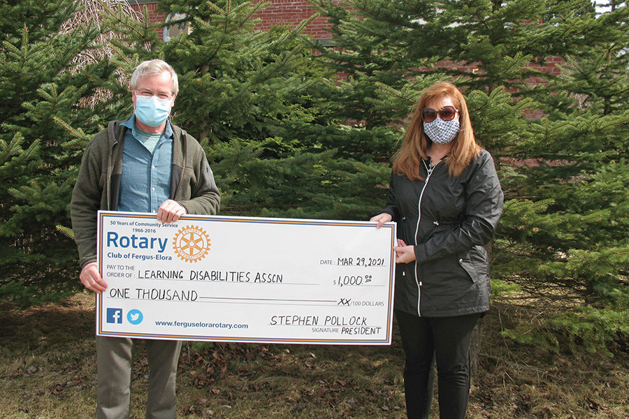 And another – Rotary Club of Fergus-Elora president Stephen Pollock presents a cheque for $700 to Joanne Pronk, executive director of the Wellington Pregnancy Care Centre, centre, and Ilse VanderMeulen, director of fundraising, right. Funds will be used for an online course for pregnancy, birth and parenting.