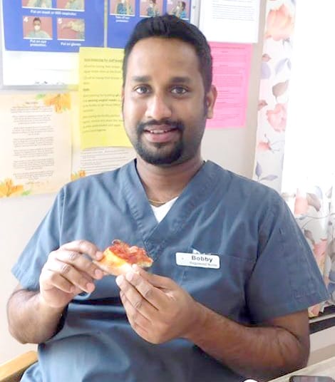 On May 27, Sean LeMay of Clifford Takeout Pizza delivered pizza along with trays of squares from Gramma Jo’s Restaurant in Clifford to the staff at Caressant Care Nursing Home for both lunch and supper.
