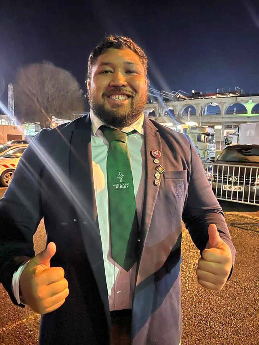 The captain of the Tonga National Rugby Team and a prop forward with Bordeaux Bègles in France’s Top 14, Tameifuna ran a skills session at the Marden Fieldhouse that attracted high school rugby players from Centre Wellington, Guelph, Milton and Brampton. Temeifuna later joined Highland senior members in viewing the Six Nations rugby matches at the Brewhouse on the Grand and the Goofie Newfie Pub.