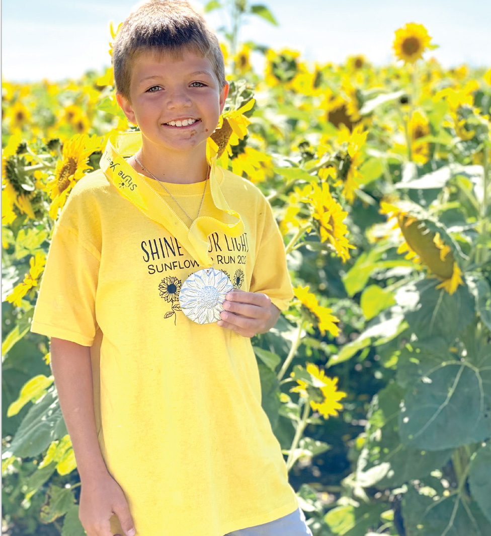 Run medalist - Robert Peters 9, son of Ashley and Jeroen Peters, displays a medal he received from the kids run at the Shine Your Light Sunflower Tour on Aug. 14. The event raised more than $20,000 for the Palmerston and District Hospital Foundation. Submitted photo