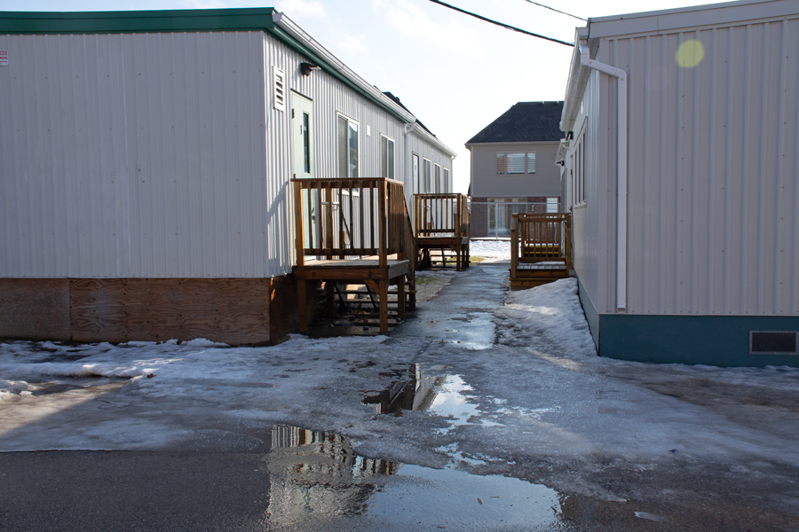 It was sloppy conditions outside four portables at Sacred Heart Catholic Elementary School in Rockwood on Jan. 9. At least some of the portables will be eliminated with a $2.5-million addition to the school anticipated to be ready next year.