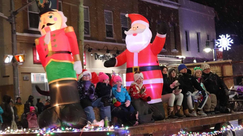 MAPLETON – Drayton’s downtown streets were lined with happy, smiling faces during the annual Santa Claus parade on a snowy Dec. 6. Festively adorned floats, sparkling lit-up trucks and tractors, and cheerful performers made the seasonal spectacle not only merry, but very bright.