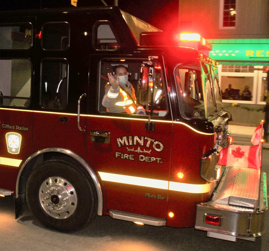 Santa cruises Clifford - Clifford volunteer firefighters set out at 6pm on Nov. 28 to sound the sirens to announce the arrival of Santa Claus in the 2020 Minto Santa Cruise. The route covered every street in Clifford.